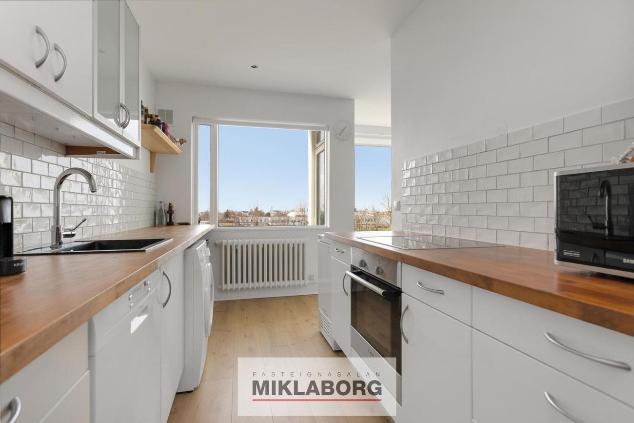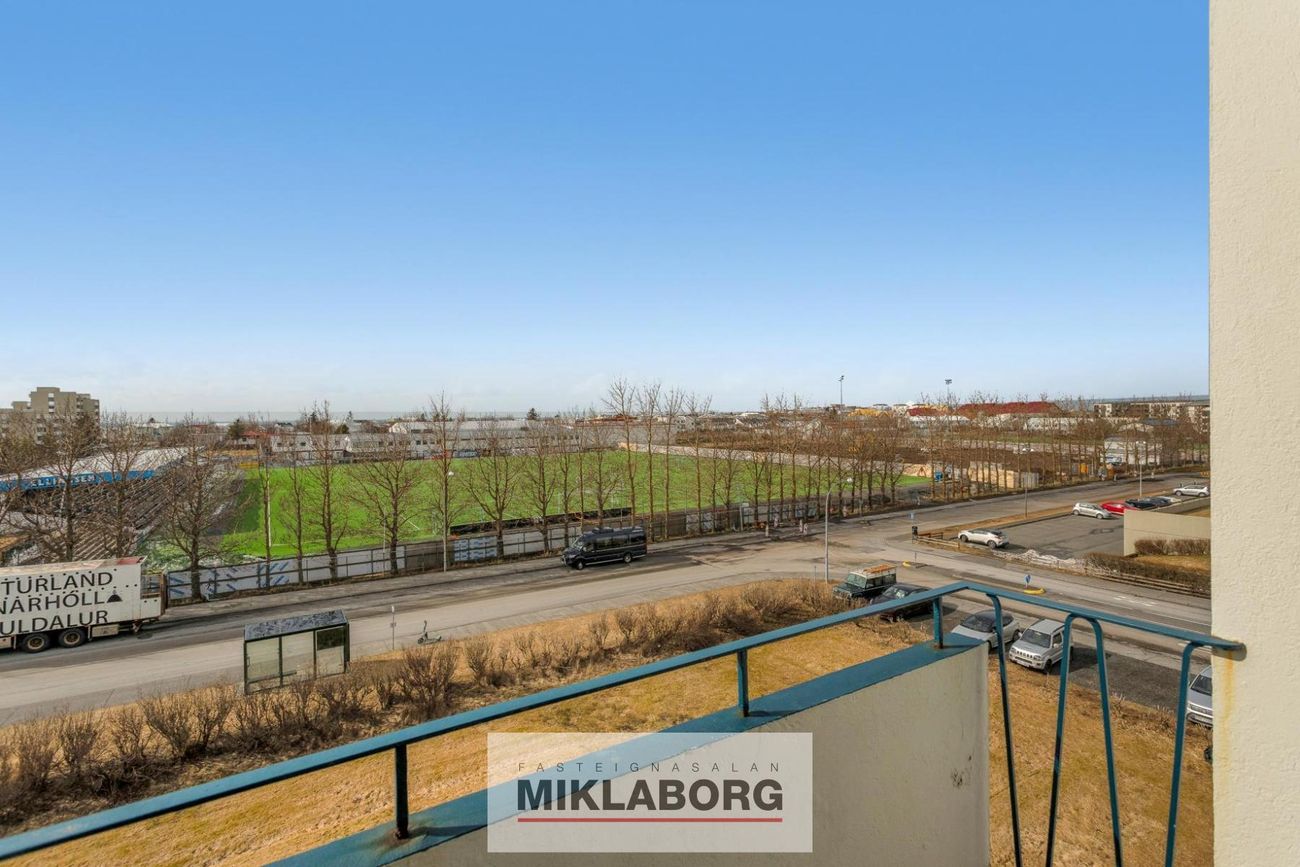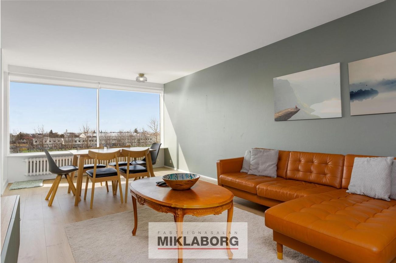 Miklaborg kynnir: Virkilega falleg og vel skipulögð 3ja herbergja útsýnis íbúð á 4. hæð. Rúmgóð stofa og borðstofa í fallegu flæði með hálf opnu eldhúsi. Tengi fyrir þvottavél í eldhúsi og pláss fyrir þurrkara. 2 svefnherbergi og bað á sér gangi. Parket á gólfum og hvítar hurðar. Frá stofu, suðvestur svölum og eldhúsi er einstakt útsýni til sjávar, yfir Reykjanesið, Álftanes og KR völlinn. Blokkin hefur fengið gott viðhald.
