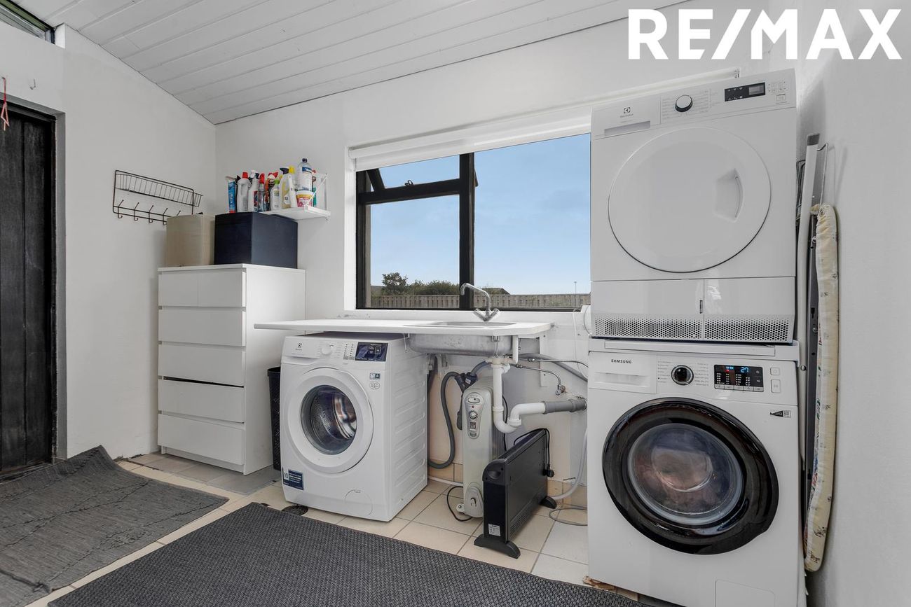 Þvottahús með flísar á gólfi, mjög rúmgott, borðpláss, skolvaskur, útgengt út í bakgarð.