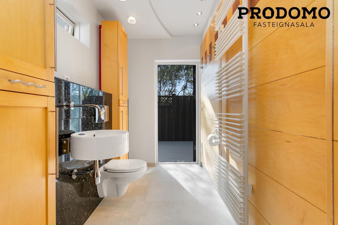 Baðherbergi var endurnýjað 2023, virkilega snyrtilegt og með hurð út á verönd.