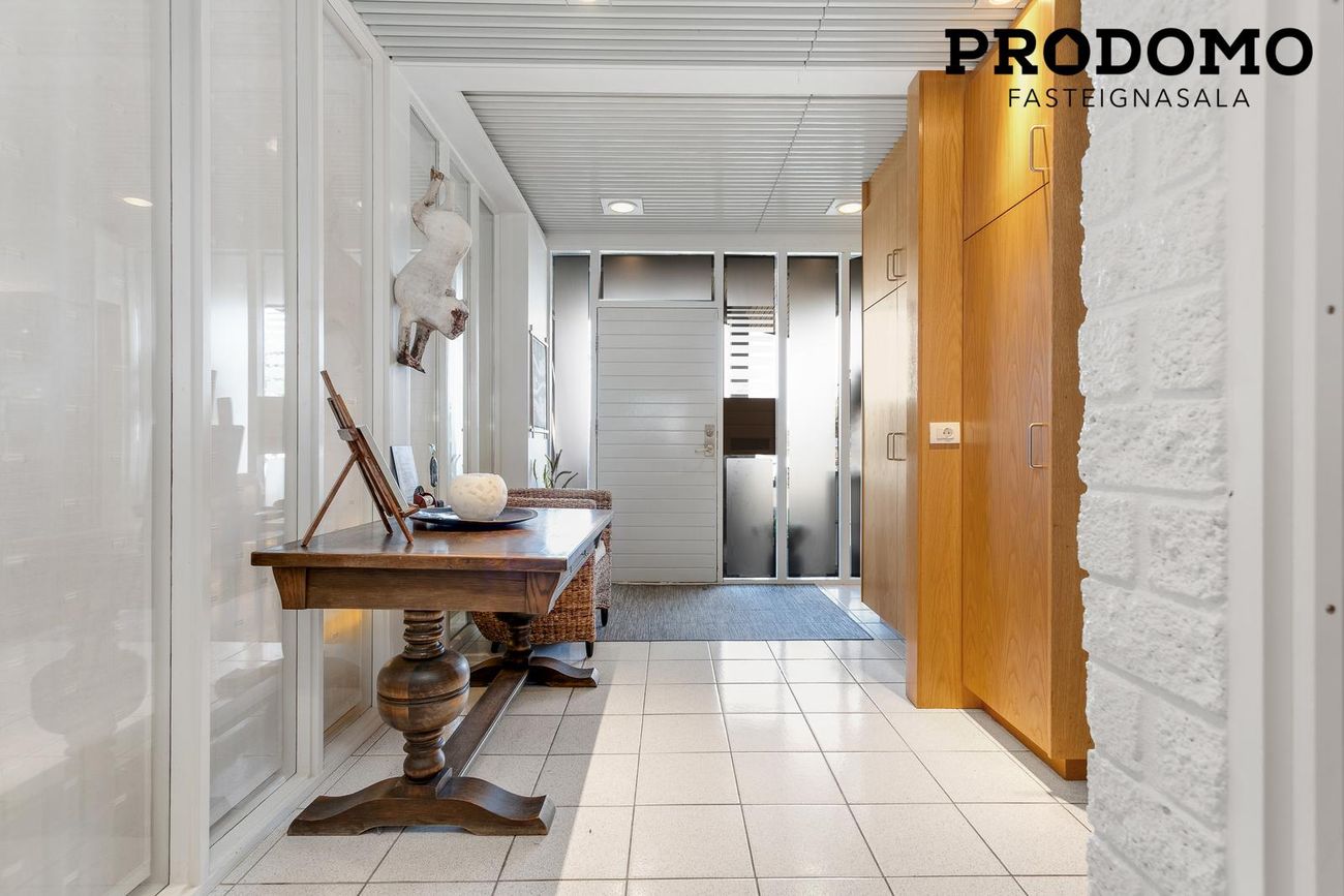 PRODOMO fasteignasala kynnir til sölu virkilega snyrtilegt og vel viðhaldið 304,3 fm einbýlishús til sölu á frábærum stað innst í botnlanga að Miðgarði 11.Um er að ræða flott hús á frábærum stað byggt árið 1974 og tvöfaldur bílskúr byggður 1993. Eignin er 304,3 fm, íbúðarhluti 194,8 fm, bílskúrinn sem er sambyggður húsinu er 53,5 en nýtist með íbúðarhluta og stakstæði bílskúrinn er 56 fm.Nánari lýsing:Forstofa með flísum á gólfi og góðum skápum