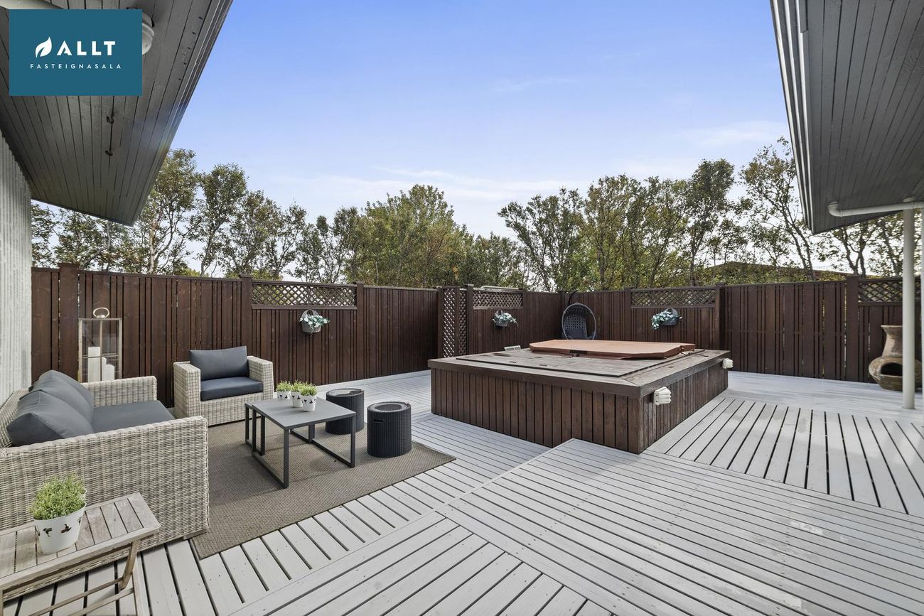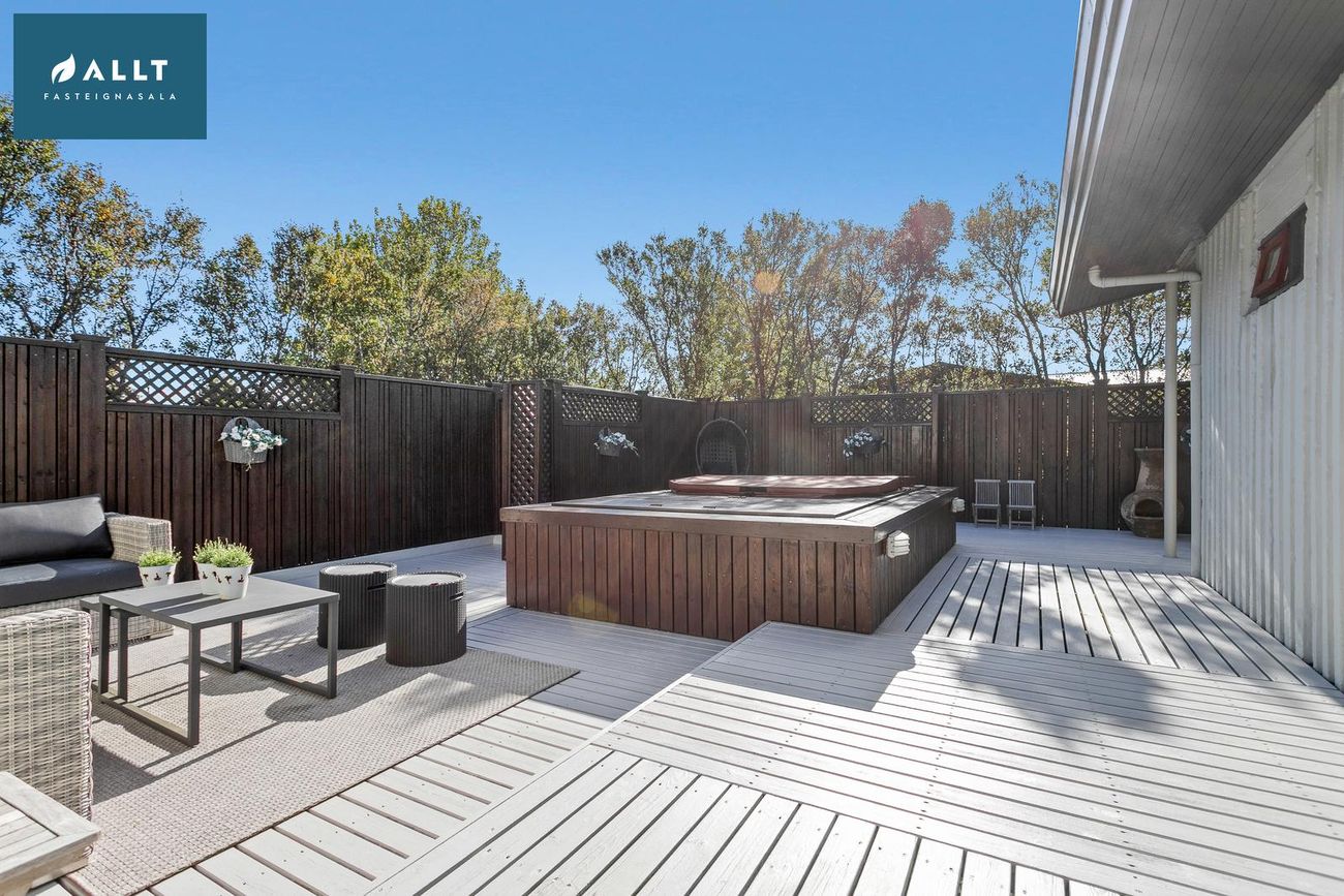 Úr forstofu er gengið inn í þvottahúsið, en það er með mjög góðri innréttingu og miklu skápaplássi. Þaðan er útgengi út á glæsilegan lokaðan pall, þar sem er heitur pottur.
