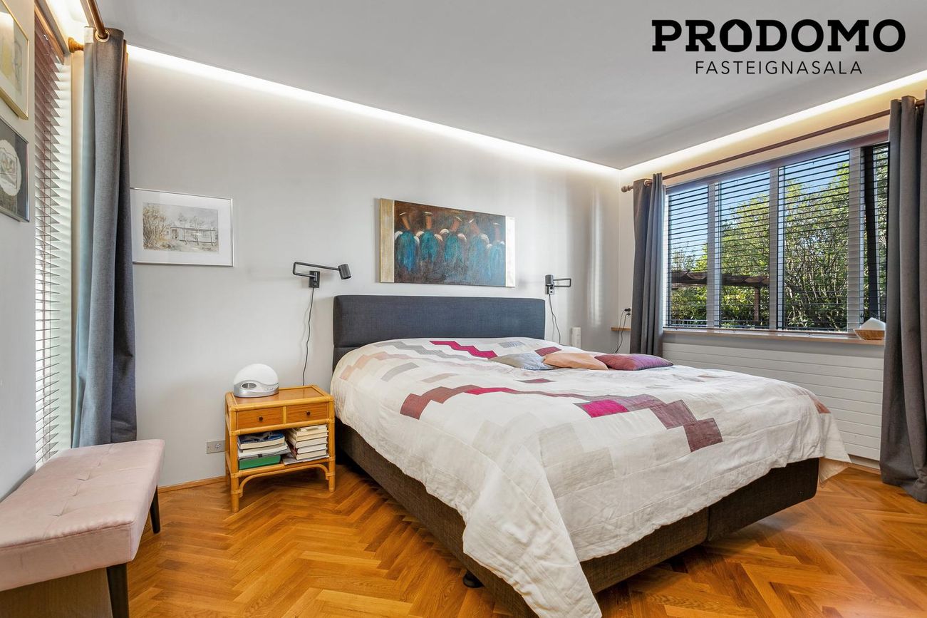Svefnherbergi eru þrjú í dag voru áður fimm, hafa öll parket á gólfi og lítið fataherbergi er inn af hjónaherbergi. Auðvelt að fjölga herbergjum aftur.