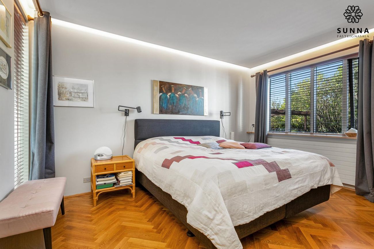 3 svefnherbergi (tvö stækkuð úr fimm). Lítið fataherbergi inn af hjónaherbergi.