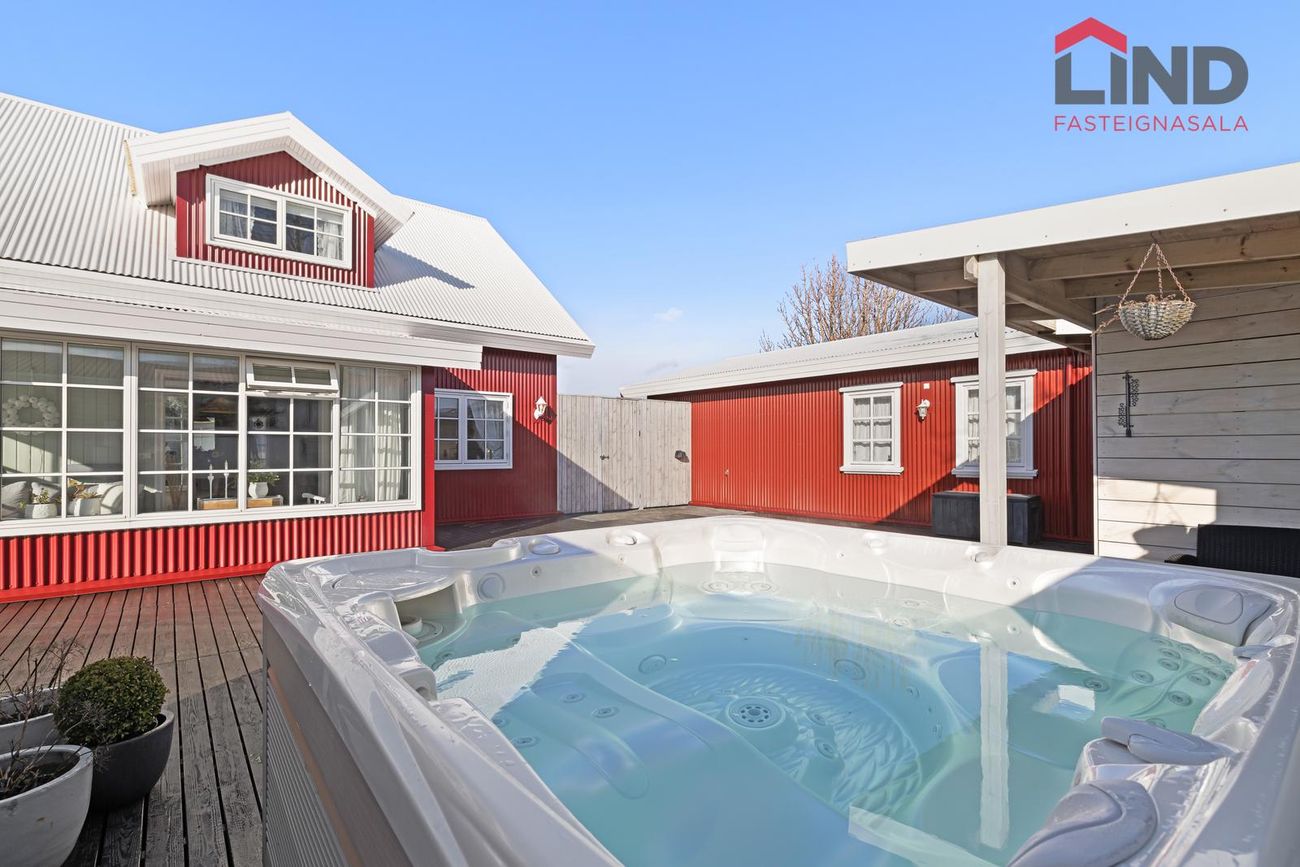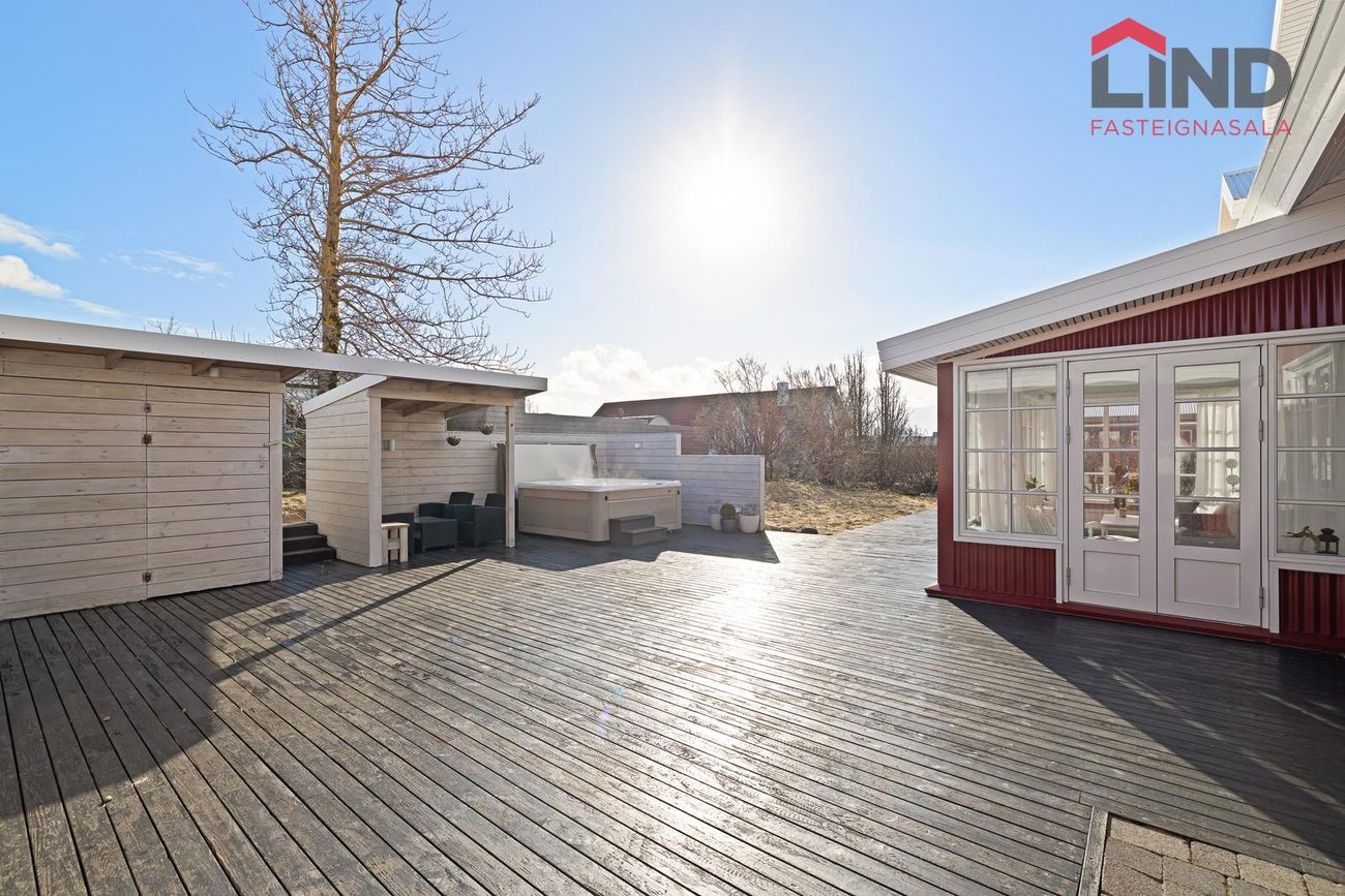 LIND fasteignasala og Þórey Ólafsdóttir, löggiltur fasteignasali, kynna í einkasölu vel skipulagt og rúmgott einbýlishús á tveimur hæðum með bílskúr á friðsælum stað á sunnanverðu Álftanesi. Eignin er einkar fjölskylduvæn og stendur á stórri og skjólgóðri lóð með suðurgarði, timburverönd og heitum saltvatnspotti.