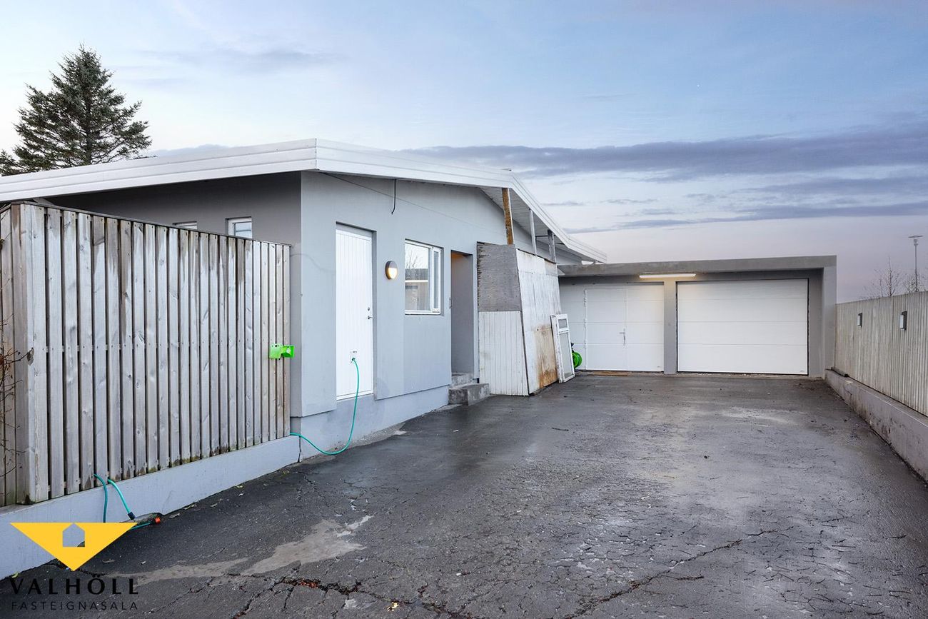51 fm bílskúr með epoxy gólfi, upphitaður, rafmagnshurðum og möguleikum til íbúðarbreytinga. Innbyggð þvottavélsaðstaða.