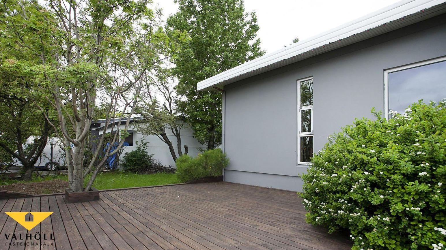 Steinsteypt 6-7 herbergja einbýlishús á einni hæð með opnu rými stofu/borðstofu/eldhúss. Stór lóð (720 fm) með timburveröndum, sólskála og hellulagðri stétt.