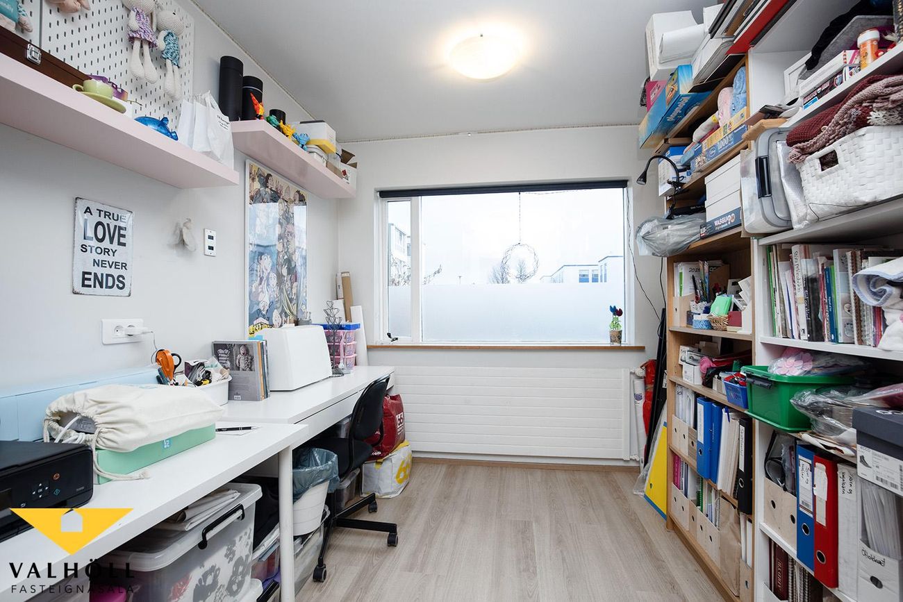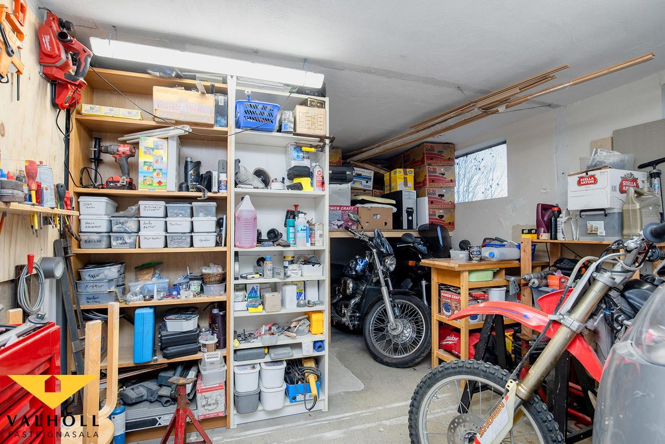 Geymsla inn af bílskúr og sérstök geymsla/hitarými á norðurgafli.
