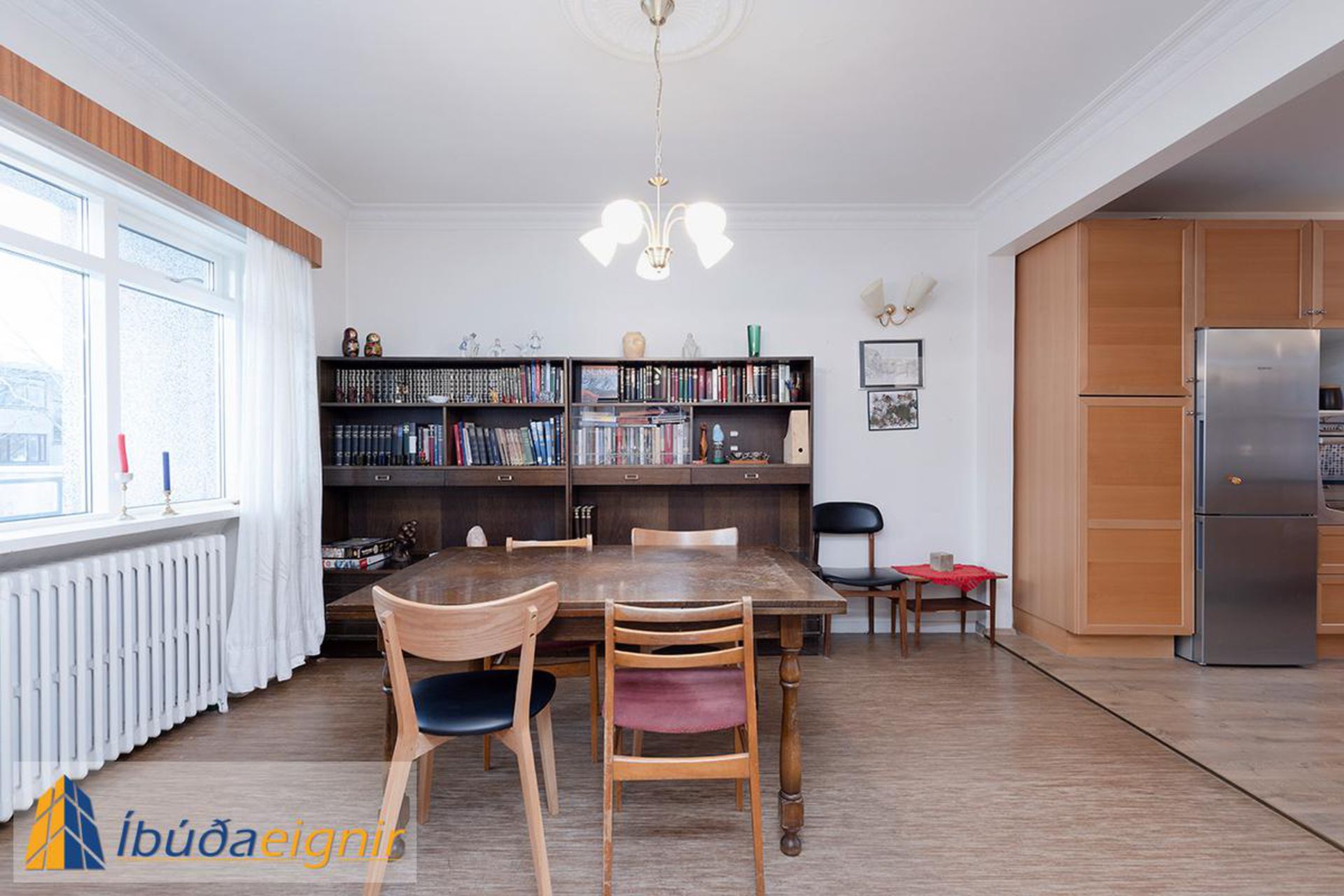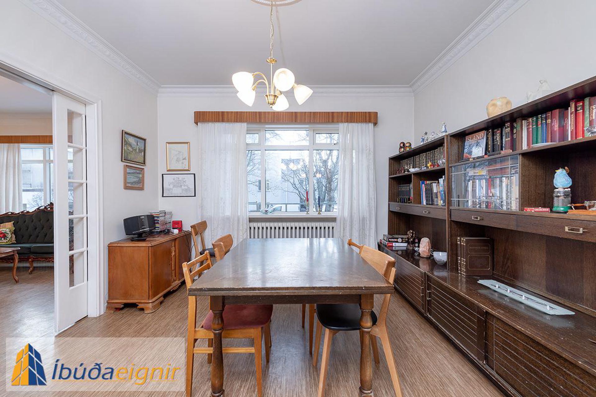 Borðstofa: Rúmgóð og björt með harðparketi á gólfi. Falleg glerhurð skilur á milli borðstofu og stofu en auðvelt er að stúka af og útbúa auka herbergi.