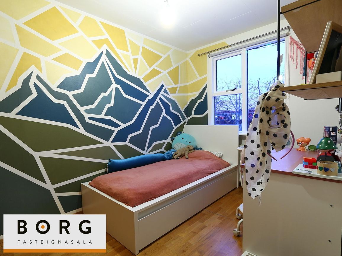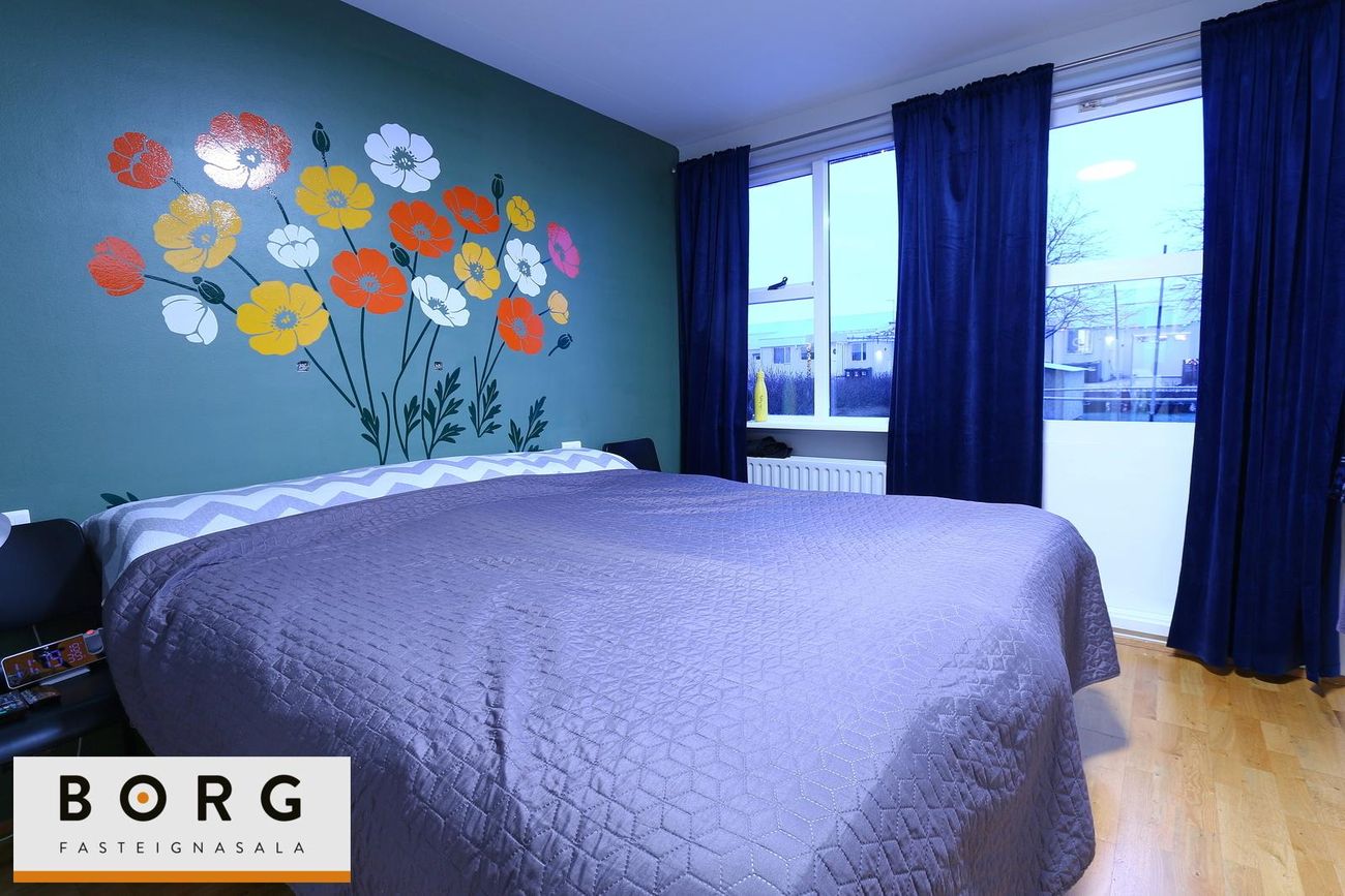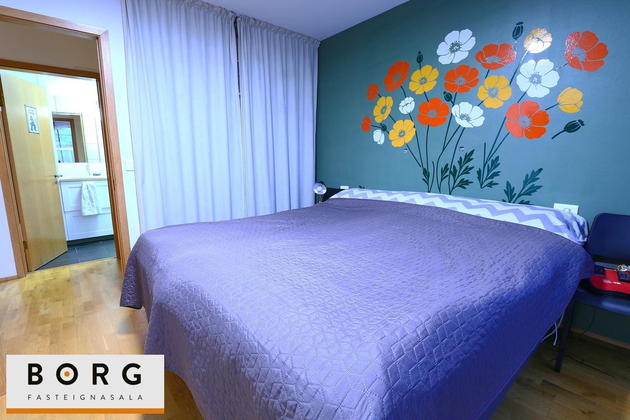 Parketgólf í stofu, eldhúsi og svefnherbergjum. Flísaleg gólf í forstofu og baðherbergjum.