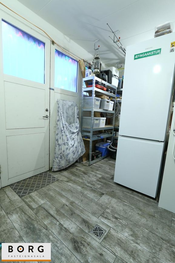 Geymslurými yfir bílskúr og hluta af íbúð, ásamt búrgeymslu í þvottaaðstöðunni.