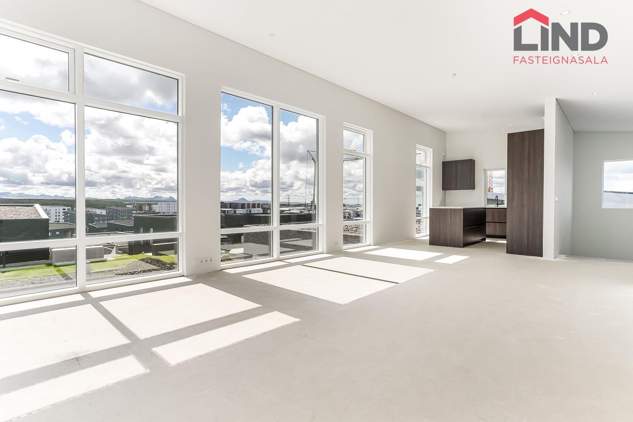 204 m², 4 svefnherbergi, 2 baðherbergi, gólfhiti, quartz eldhúsborð, AEG tæki, sólstopp gler.