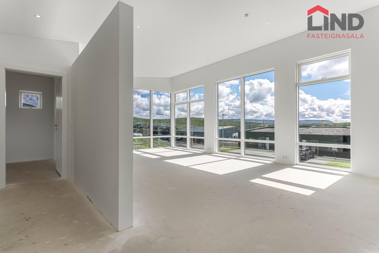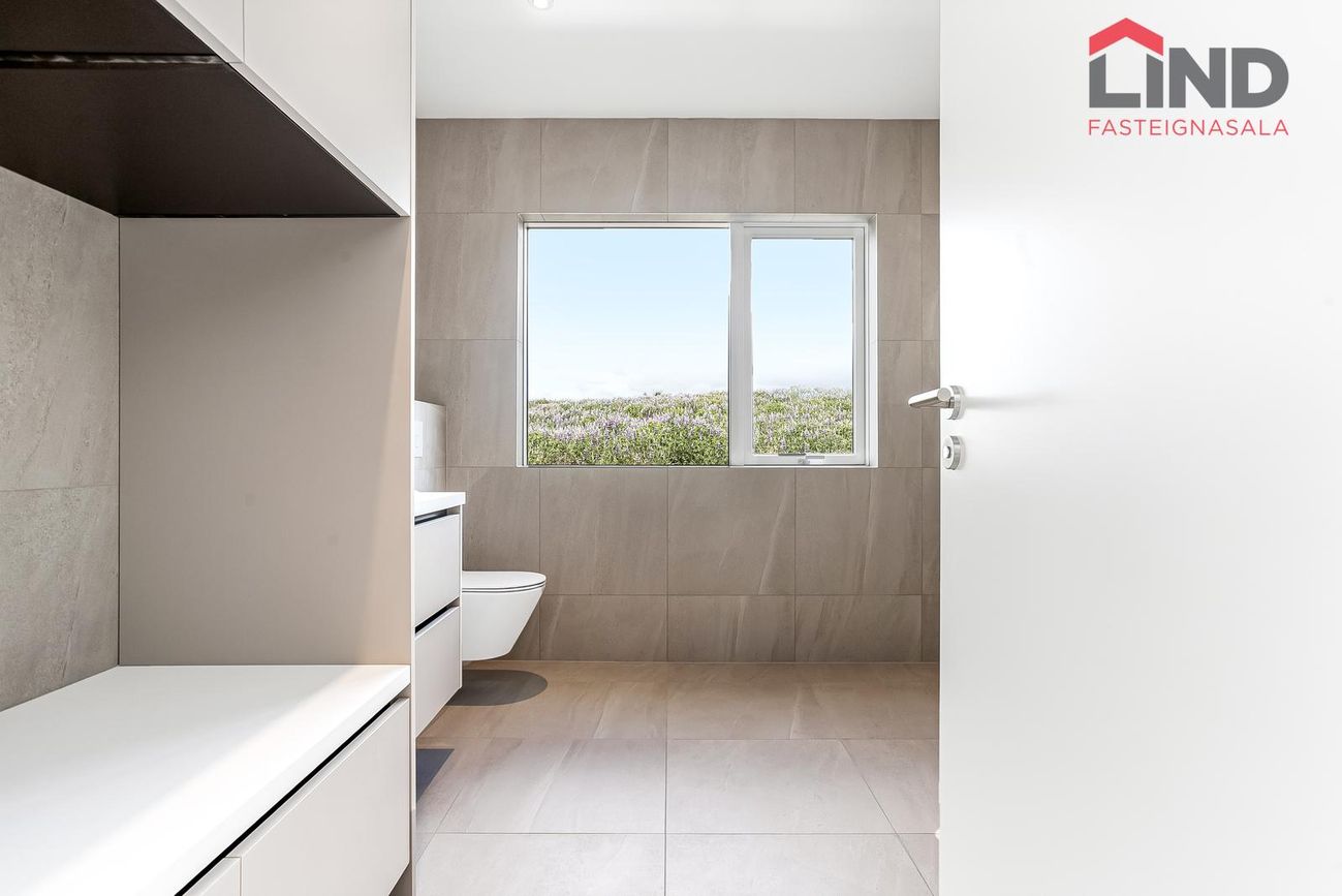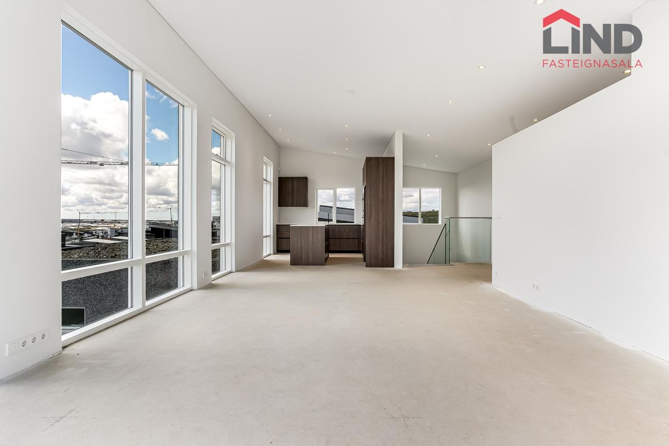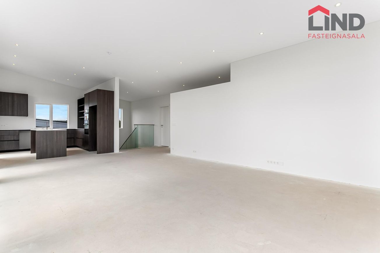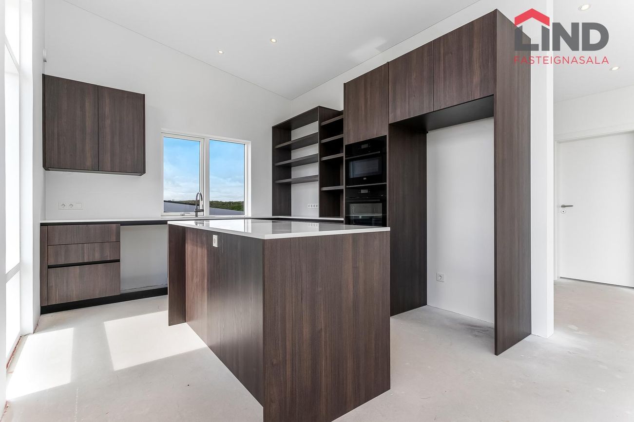 204 m², 4 svefnherbergi, 2 baðherbergi, gólfhiti, quartz eldhúsborð, AEG tæki, sólstopp gler.