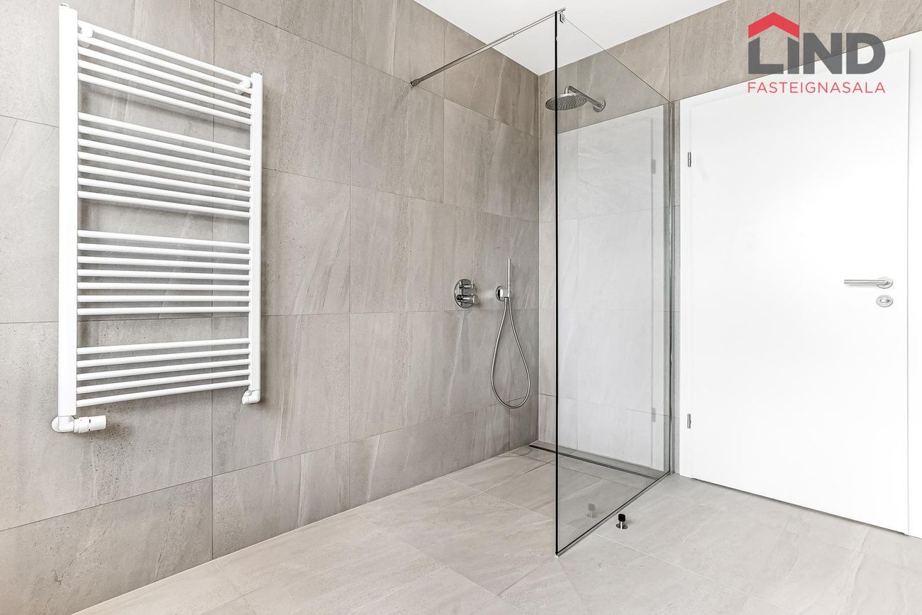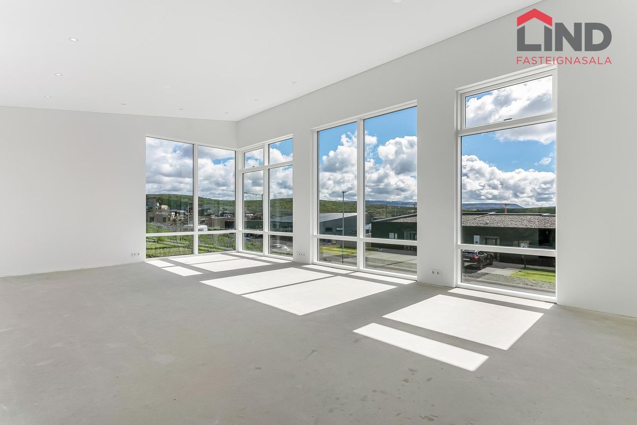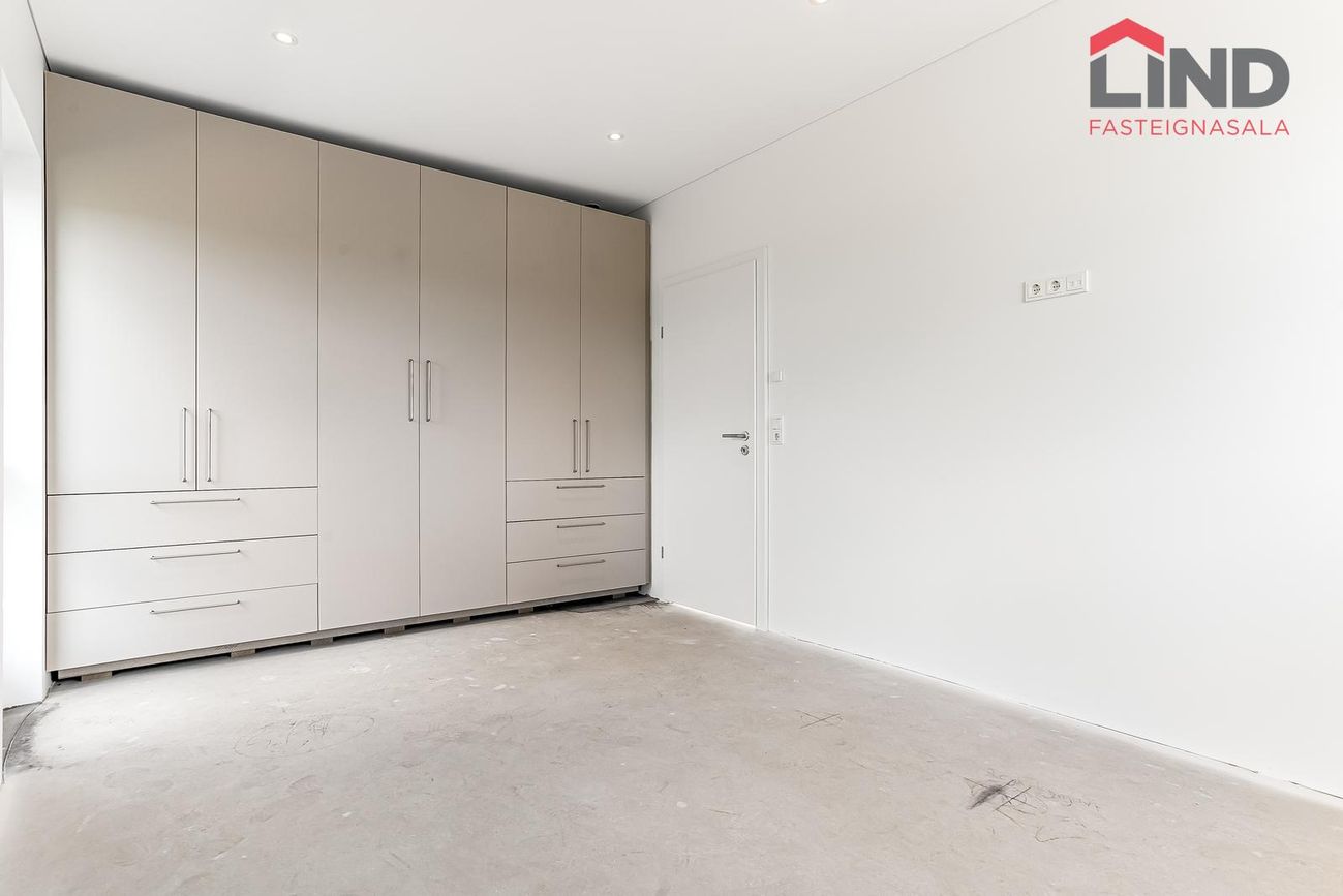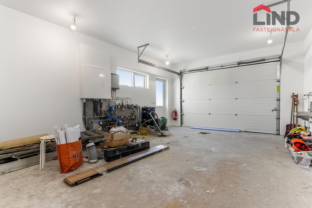 204 m², 4 svefnherbergi, 2 baðherbergi, gólfhiti, quartz eldhúsborð, AEG tæki, sólstopp gler.