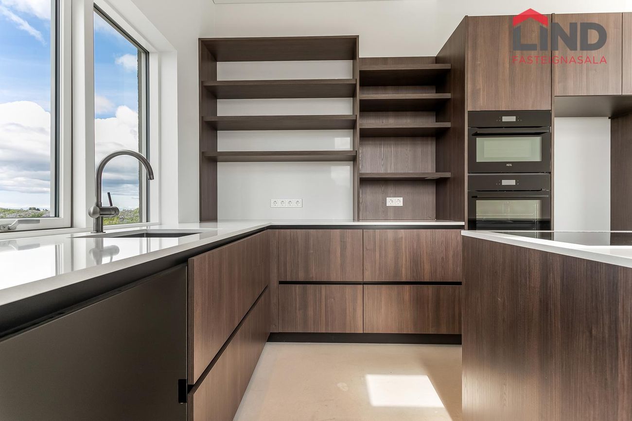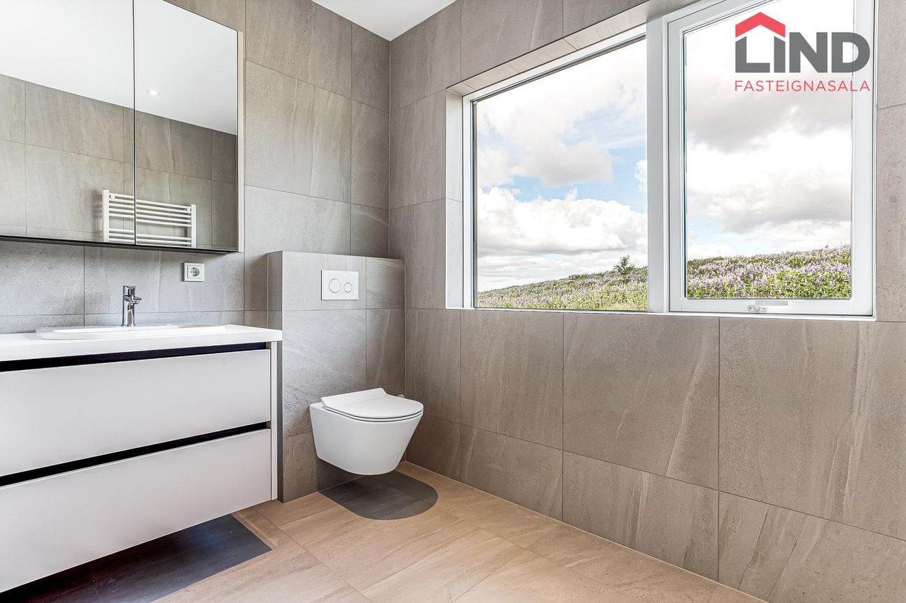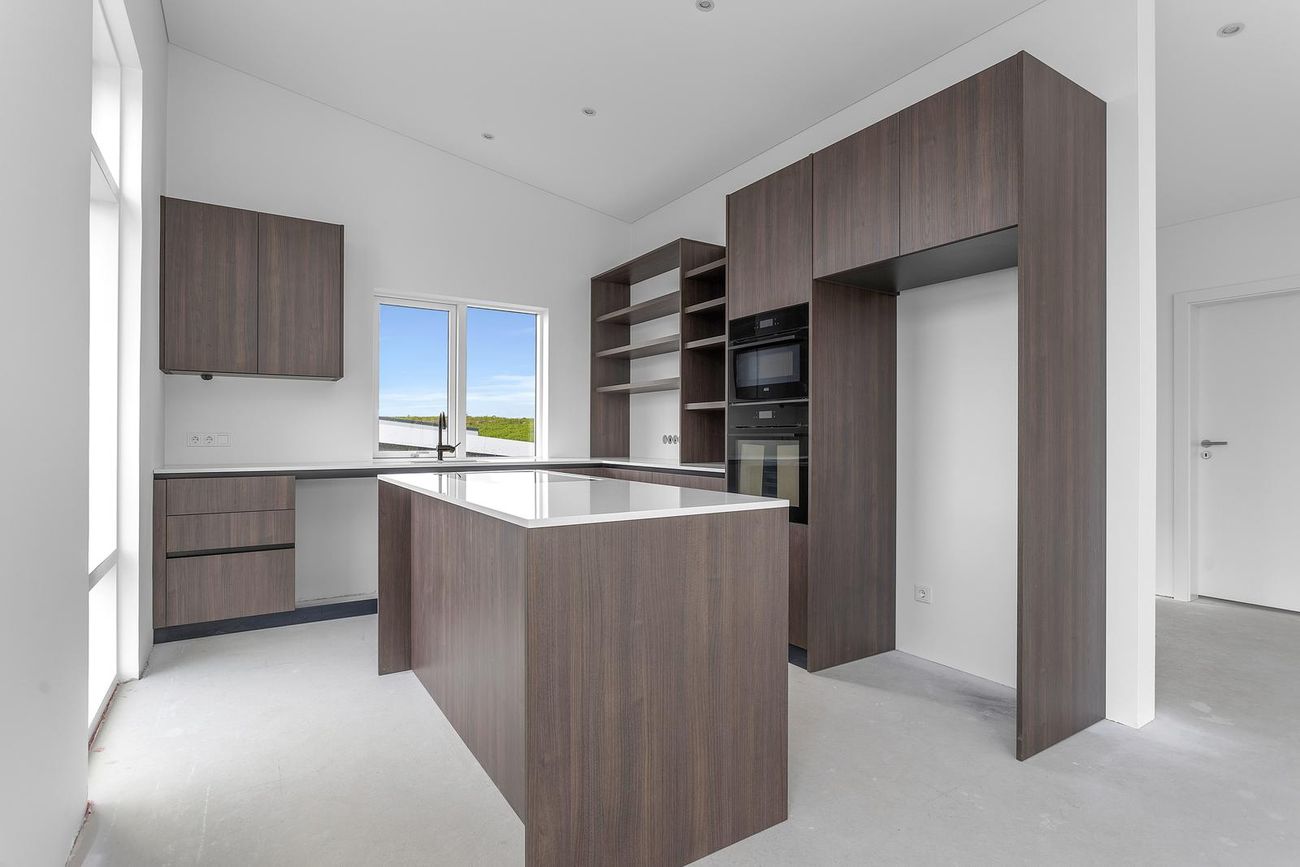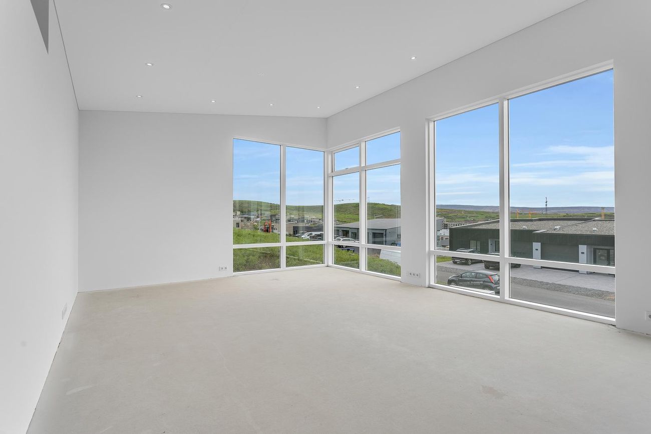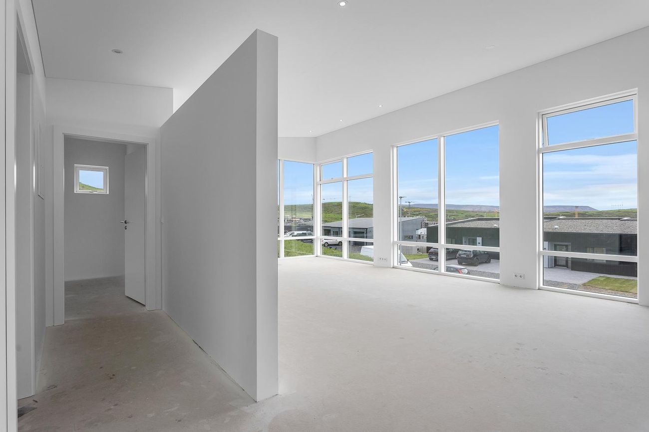 204 m², 4 svefnherbergi, 2 baðherbergi, gólfhiti, quartz eldhúsborð, AEG tæki, sólstopp gler.