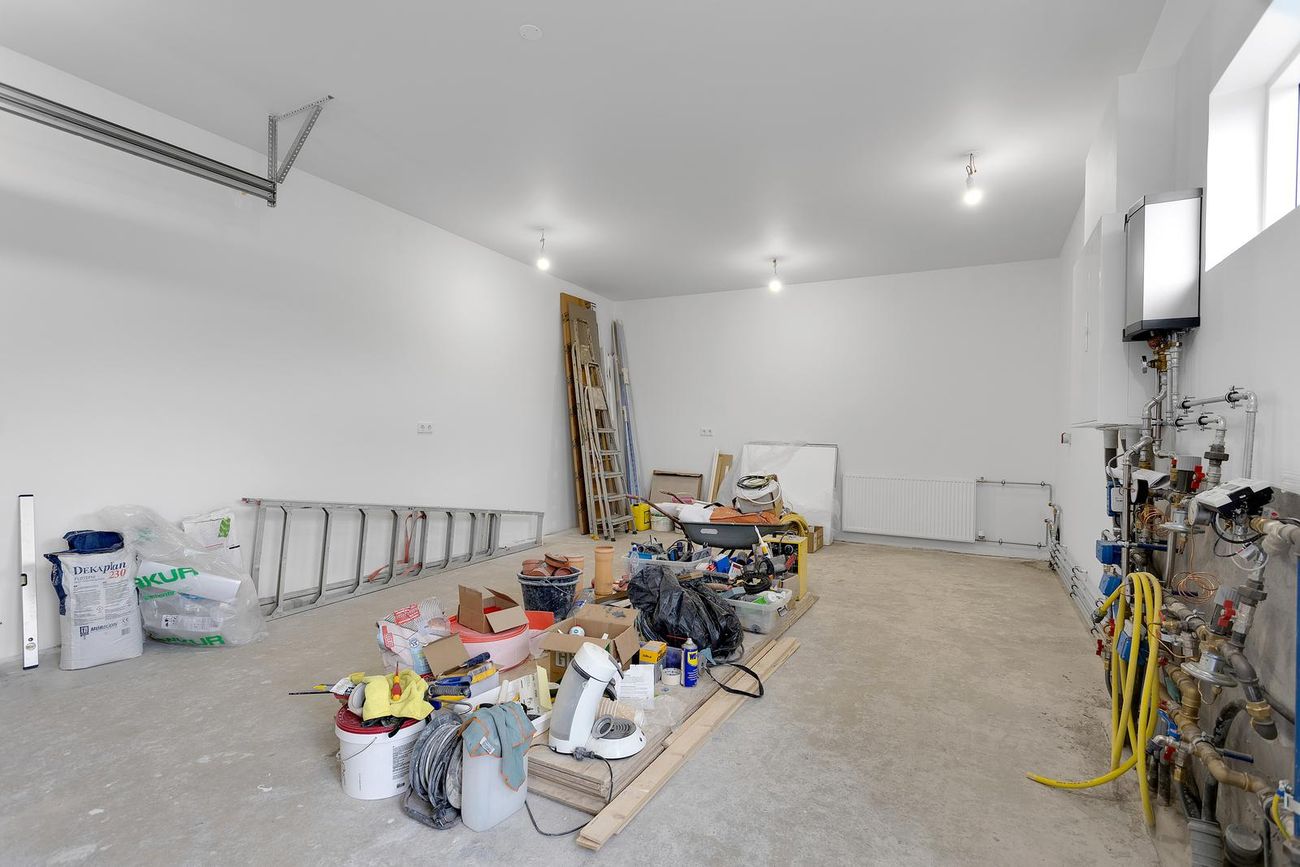 Skolvaskur í bílskúr og innbyggðar geymslur í íbúð.
