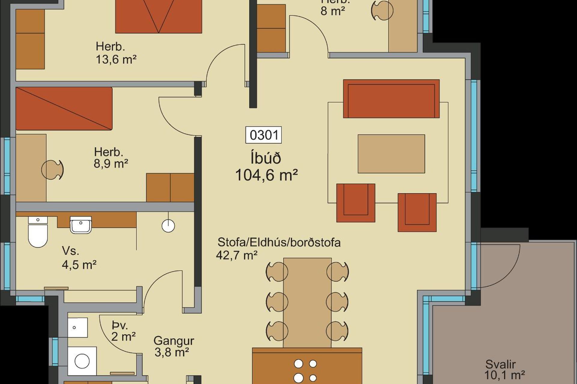 | 4 | 123,30 m² | 72.900.000 kr. 21. apríl 2021 | 69.900.000 kr. 28. júlí 2021 |