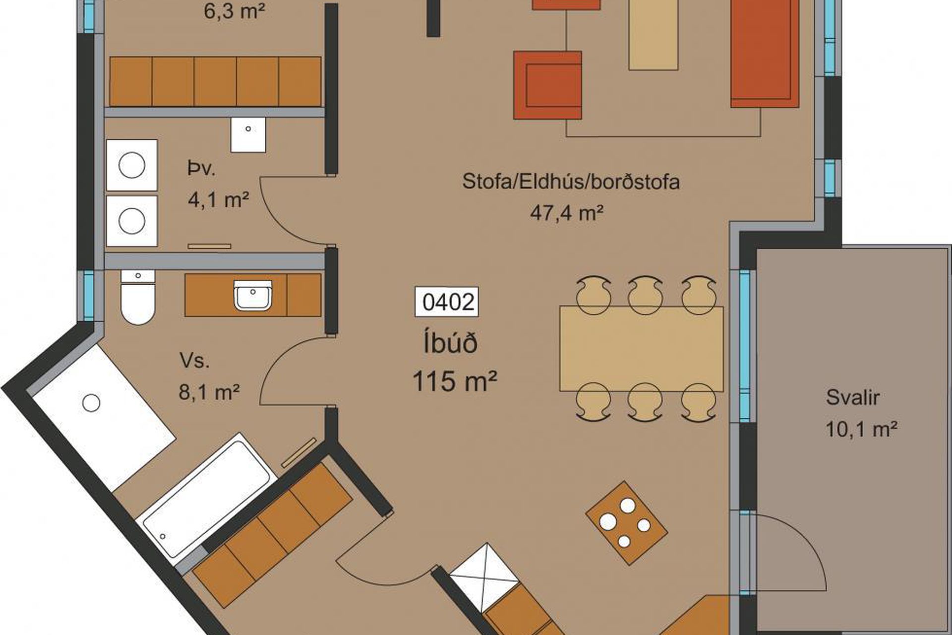 | 4 | 123,30 m² | 72.900.000 kr. 21. apríl 2021 | 69.900.000 kr. 28. júlí 2021 |