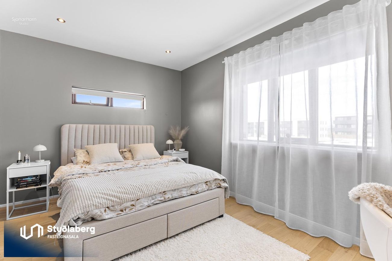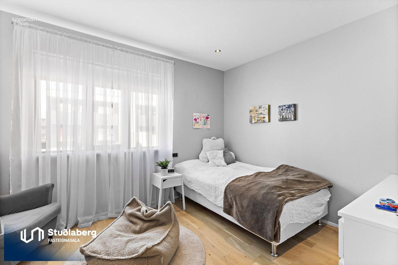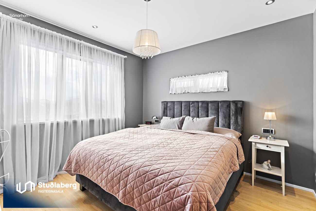 Svefnherbergin eru fjögur og hafa þau öll parket á gólfi.