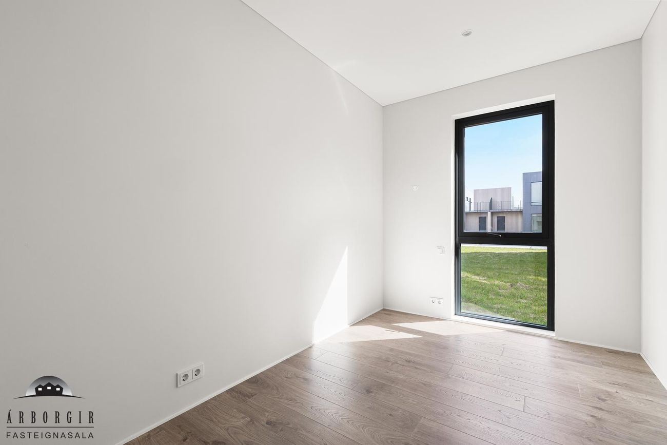 Fjórbýlishús á tveimur hæðum, 3 svefnherbergi, gólfhiti, parketgólf og flísalögð rým.