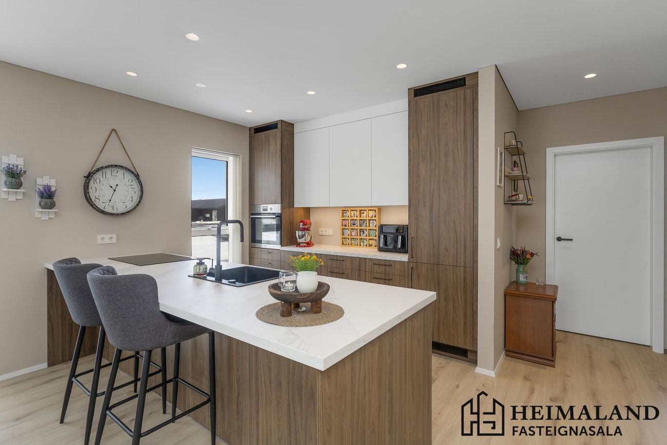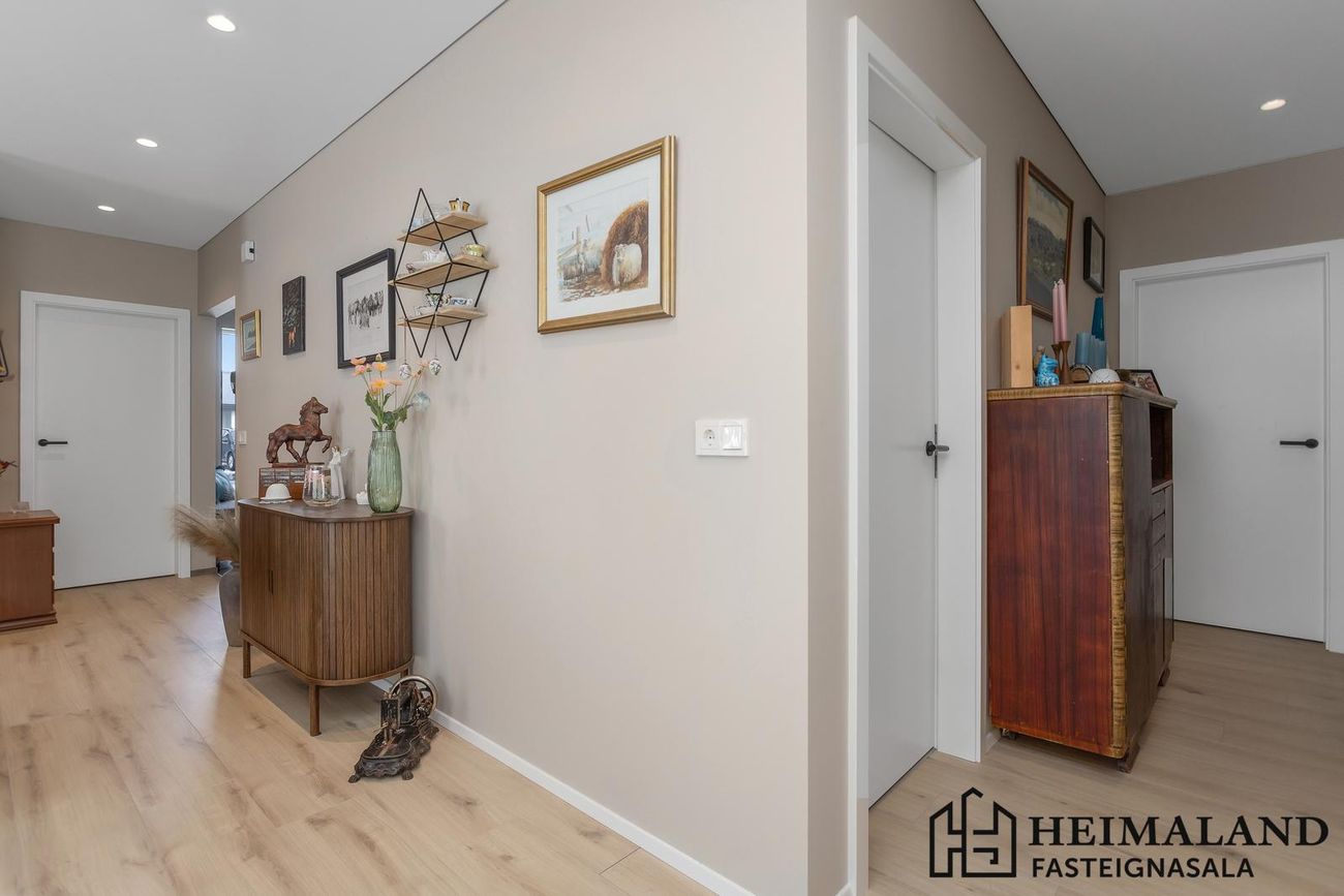ATH. loftadúkur er í öllum loftum íbúðar, ekki í bílskúr, sem gerir hljóðvist íbúðarinnar sérlega góða.