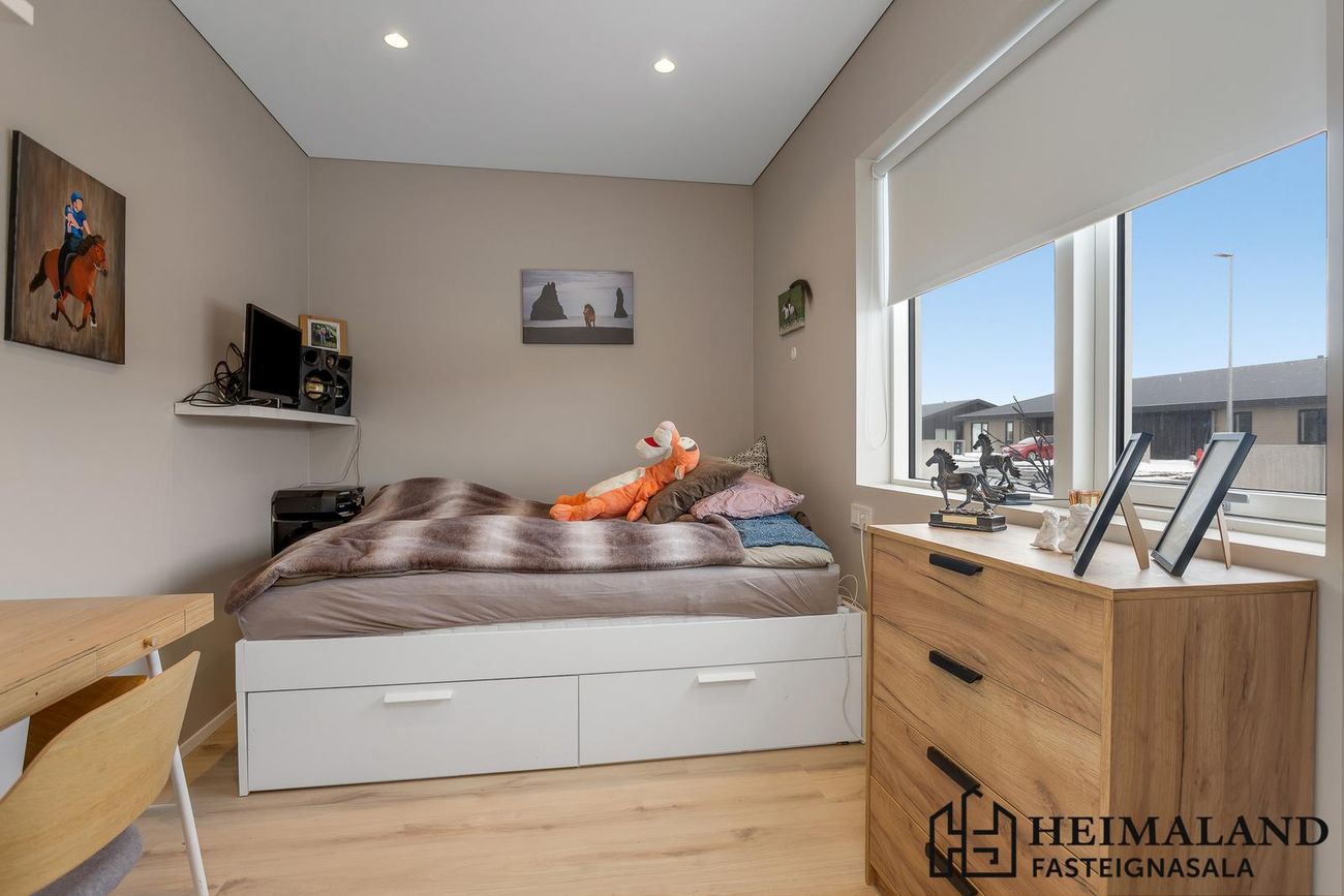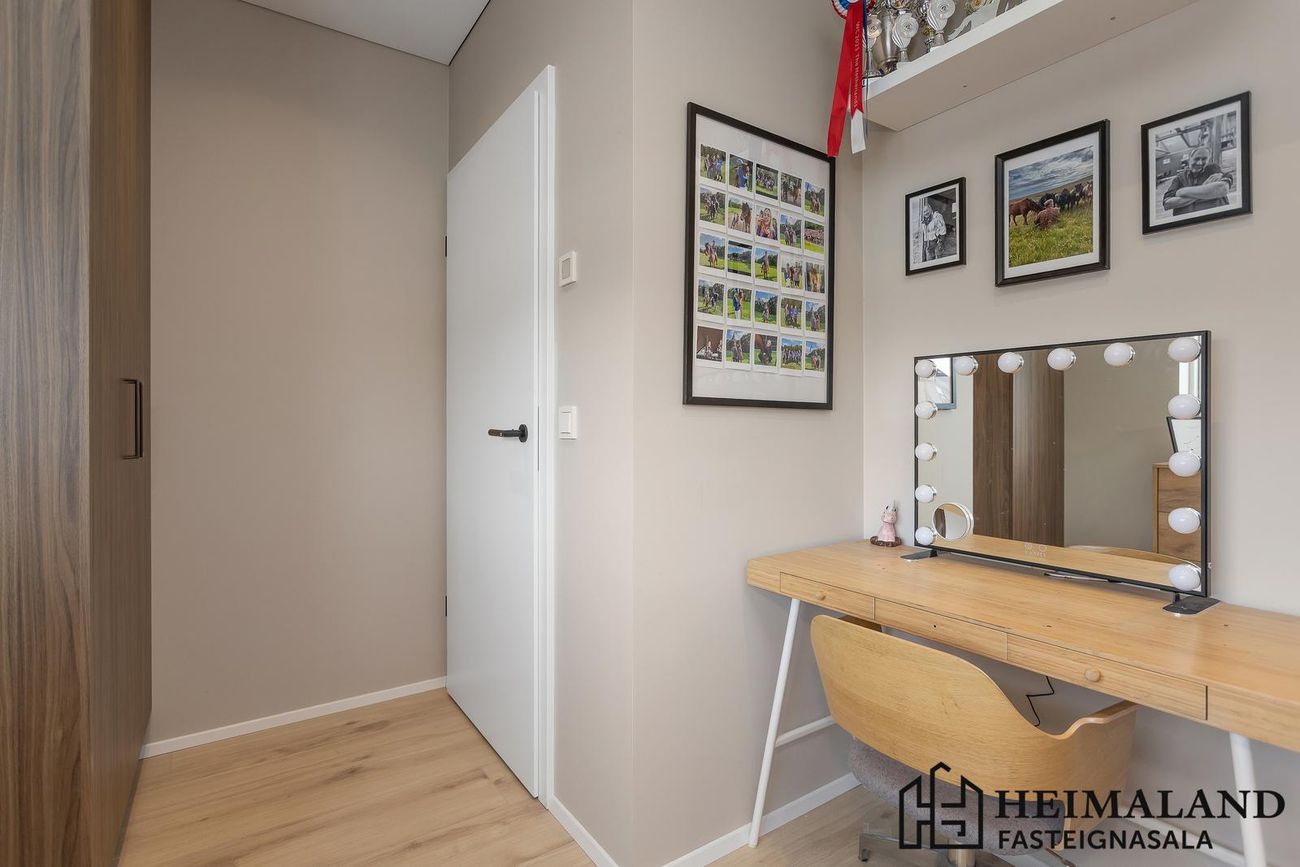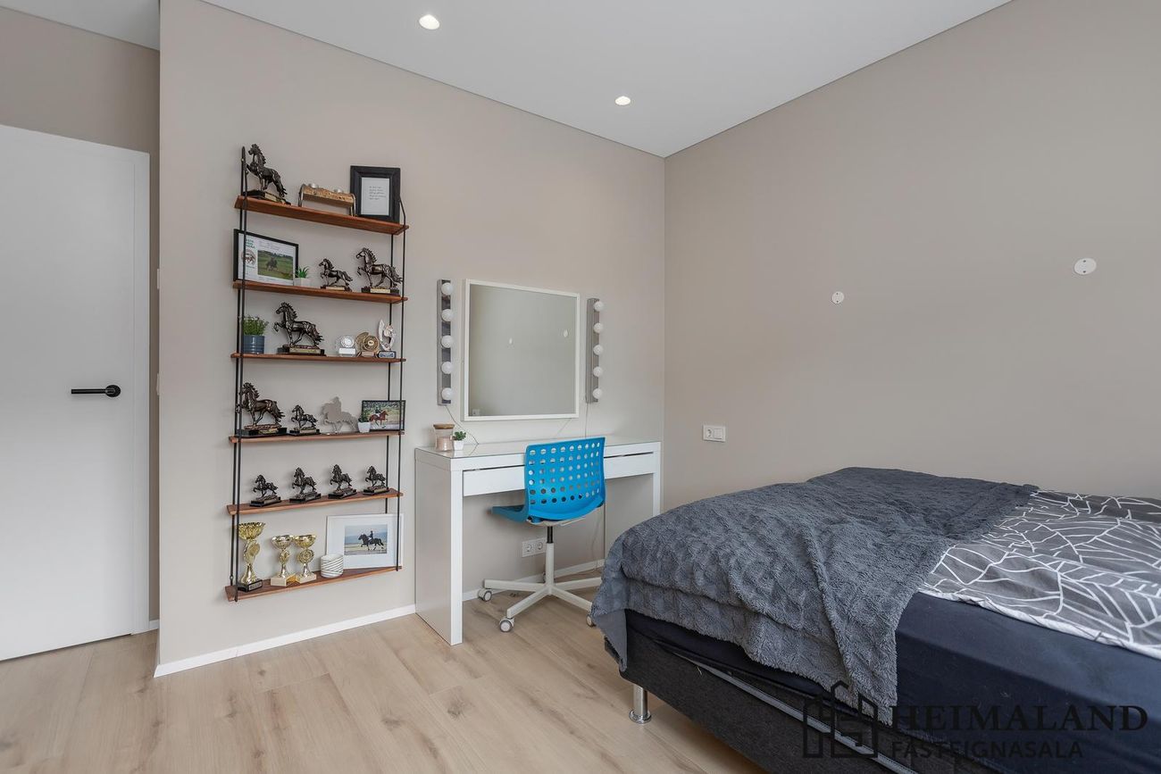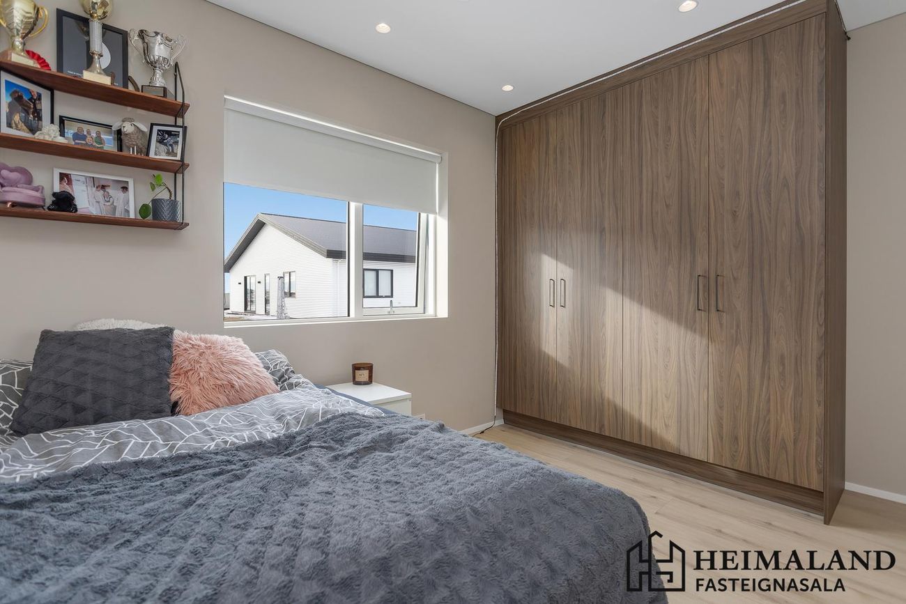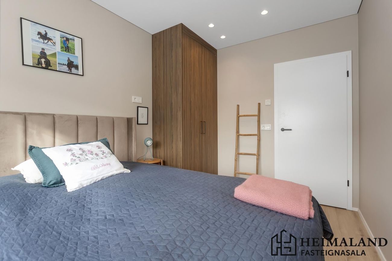 Svefnherbergin eru 3, öll með harðparketi á gólfum og rúmgóðum fataskápum.