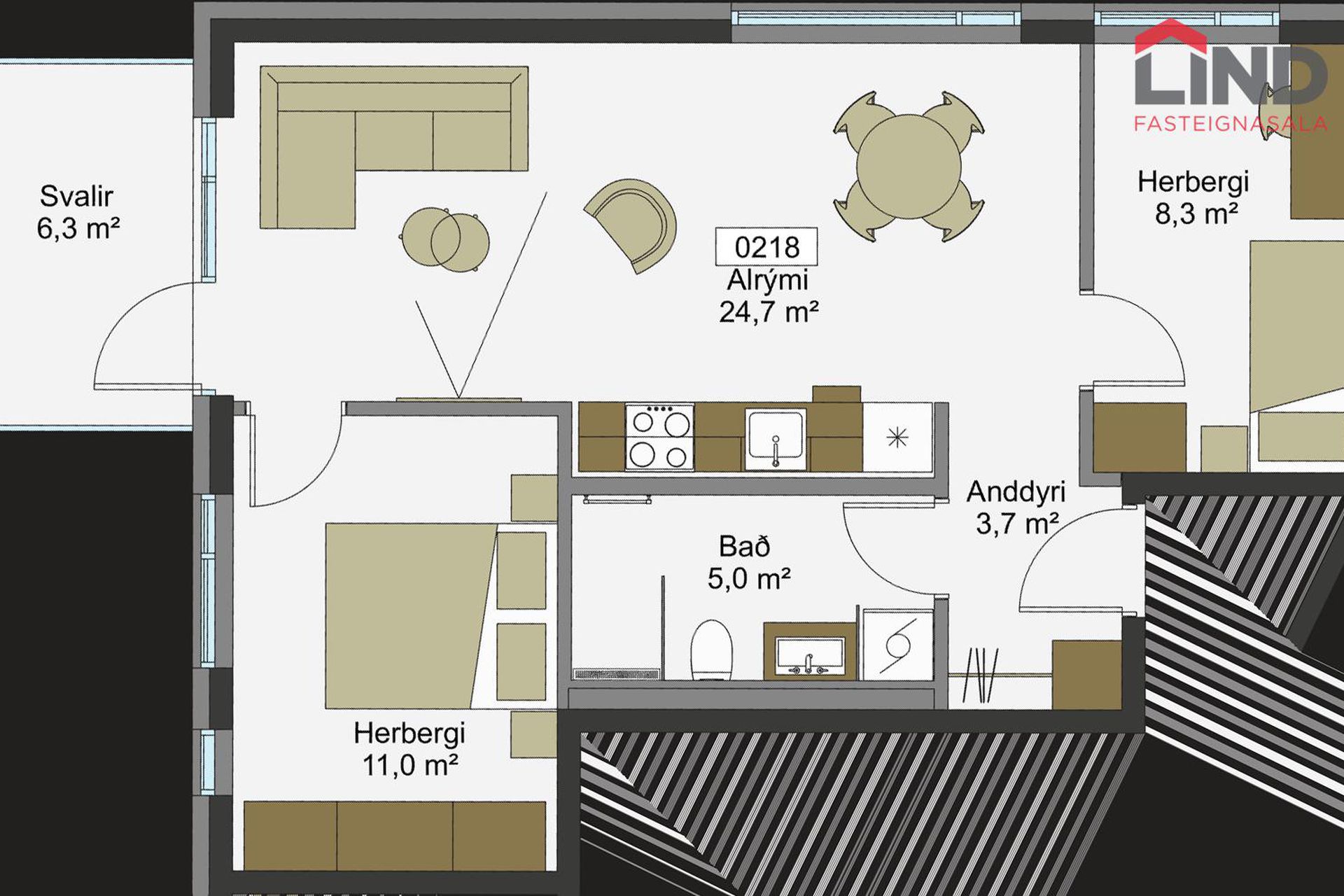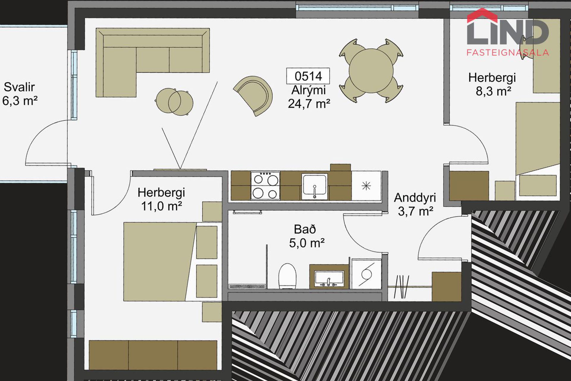 0518 | 3 | 91,40 m² | 99.500.000 kr. 15. mars 2025 | 91.990.000 kr. 1. júní 2023 |