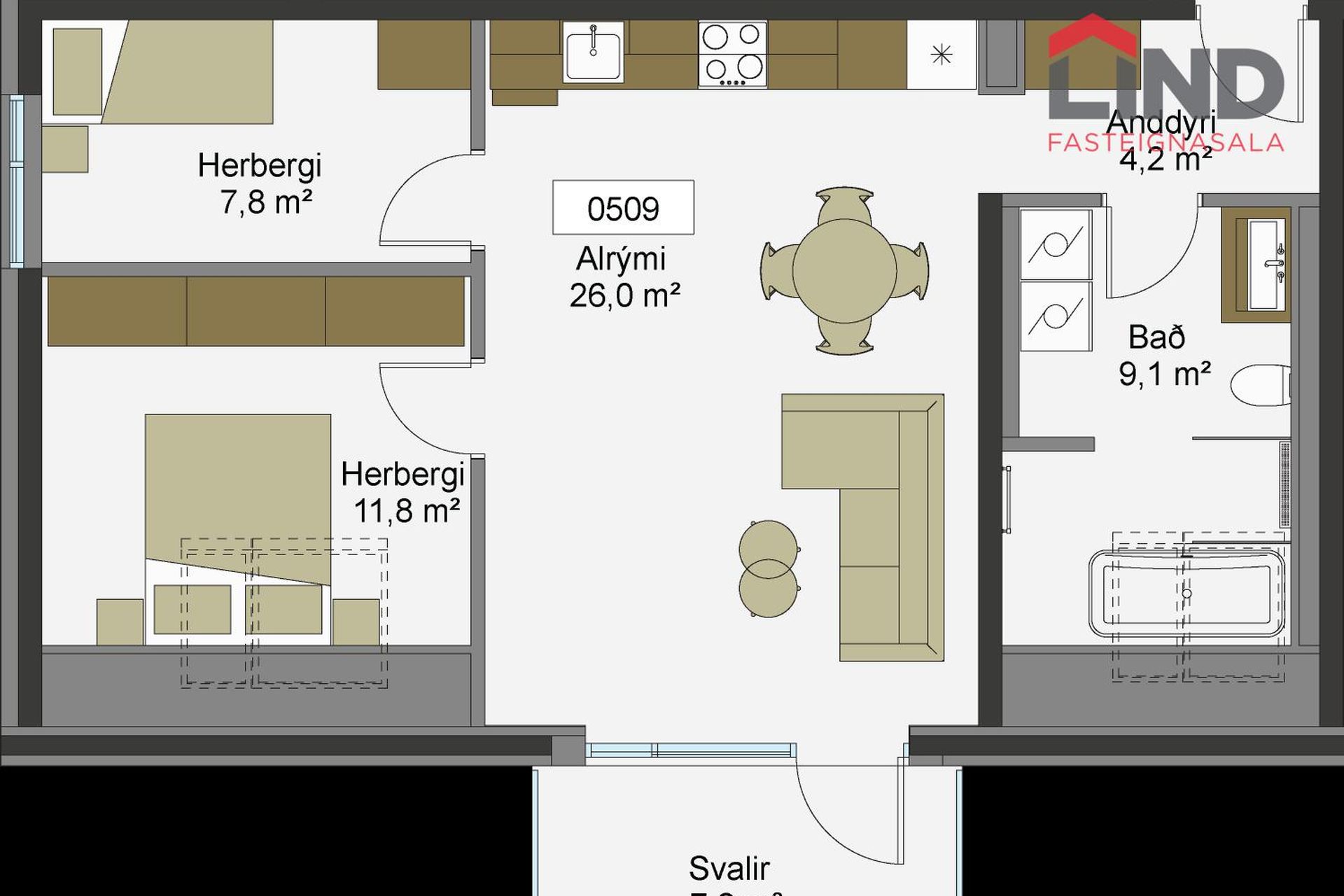 0509 ![]() | 3 | 73,60 m² | 104.900.000 kr. 30. mars 2026 | 97.990.000 kr. 13. maí 2024 |