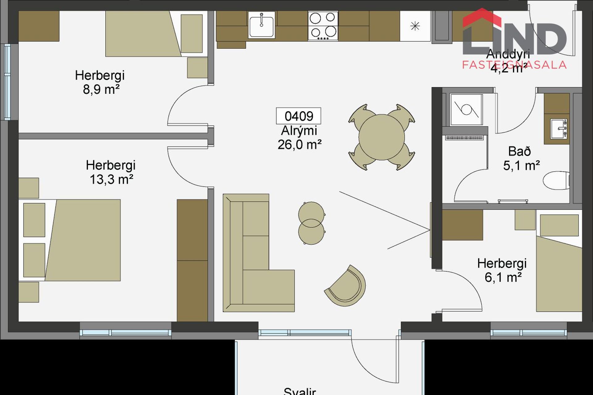 | 3 | 113,40 m² | 139.900.000 kr. 25. júní 2025 | 104.990.000 kr. 8. apríl 2024 |