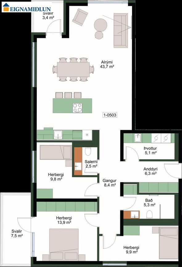 0102 ![]() | 2 | 43,40 m² | 59.900.000 kr. 18. janúar 2025 | - - |