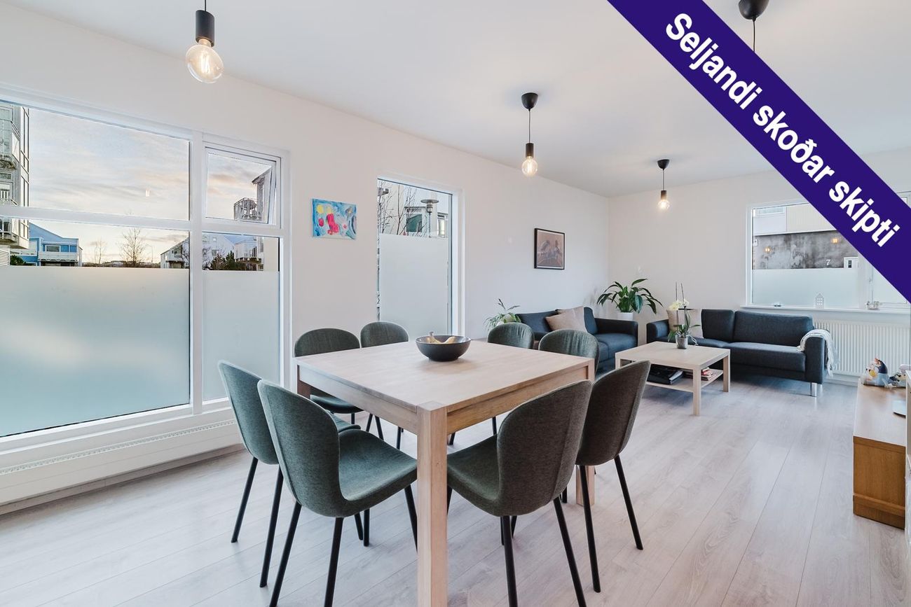 Falleg og vel skipulögð 3ja herbergja íbúð með opnu rými og góðri geymslu. Inniheldur forstofu, eldhús, stofu, borðstofu, tvö svefnherbergi, baðherbergi, þvottahús og geymslu.