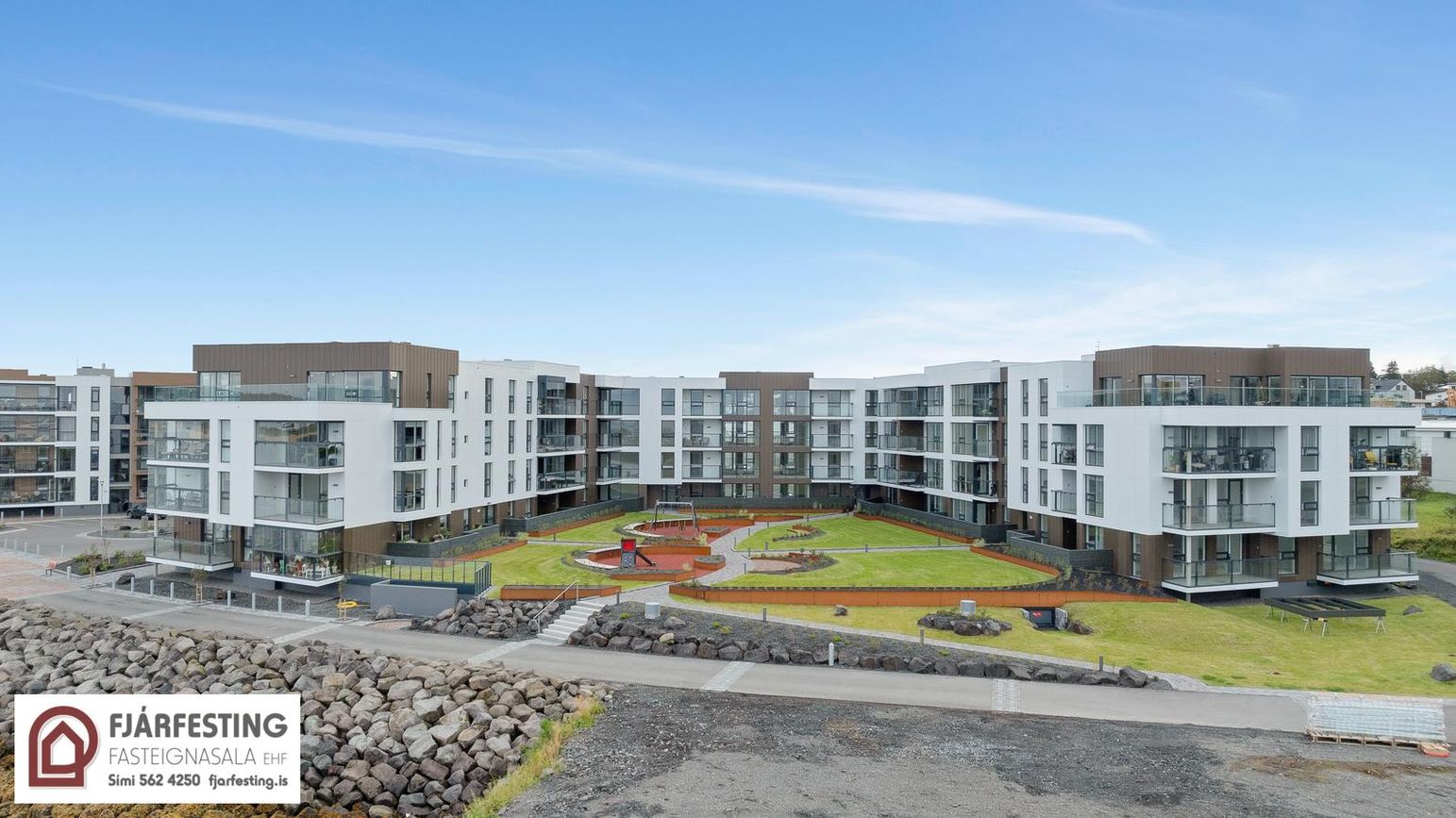 3ja herbergja íbúð á 1. hæð í 4 hæða nýbyggingu með lyftu. Skiptist í forstofa, hol, hjónaherbergi með fataskáp, barnaherbergi með fataskáp, baðherbergi, þvottaherbergi, eldhús með eyju, stofu og borðstofu. Allar innréttingar sérsmíðaðar. Íbúðin skilast með flísum í votrýmum, annars án gólfefna. Gólfhiti í öllum herbergjum.