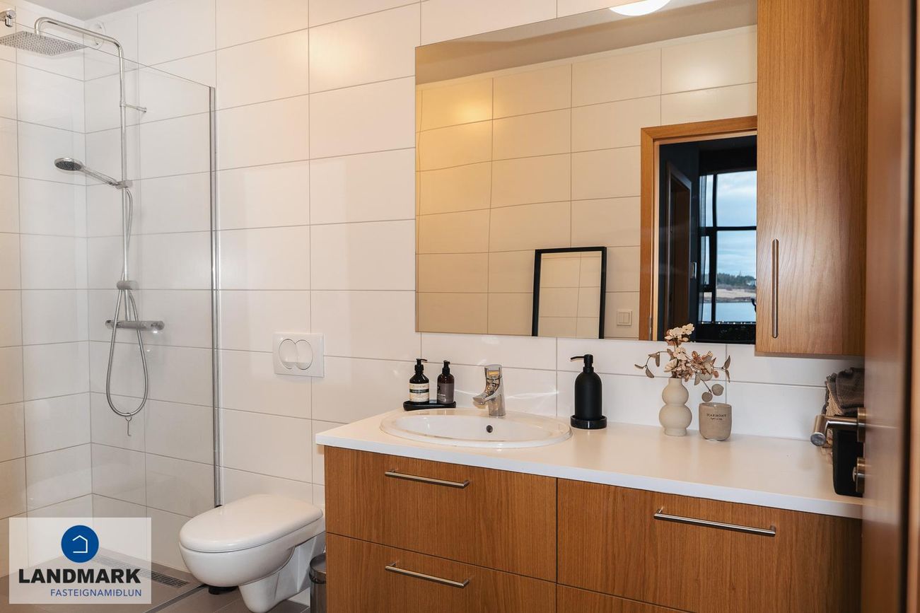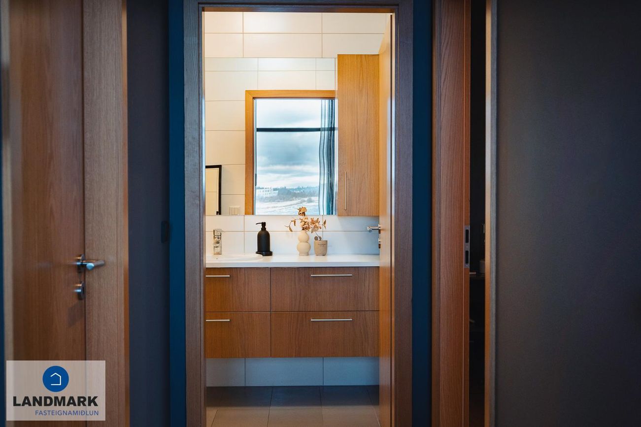 Íbúðin er með innbyggðri led-lýsingu í loftum og aukinni lofthæð.StaðsetningEignin er staðsett í nýju og fallegu hverfi með nálægð við náttúru, göngu/hjólaleiðir og fallegt útisvæði. Húsið er vandað og glæsilegt með lyftu og sameiginlegri hjóla- og vagnageymslu. Þetta er einstakt tækifæri fyrir þau sem vilja sameina þægindi og náttúru á einstakan hátt.