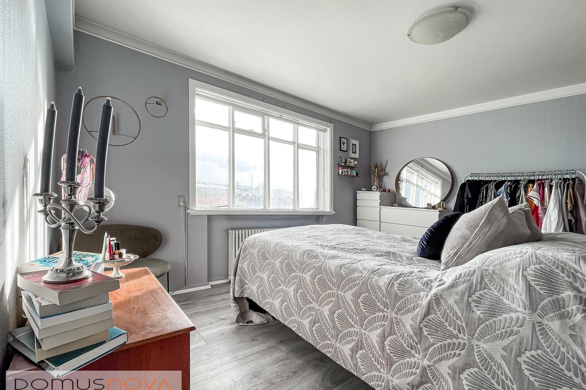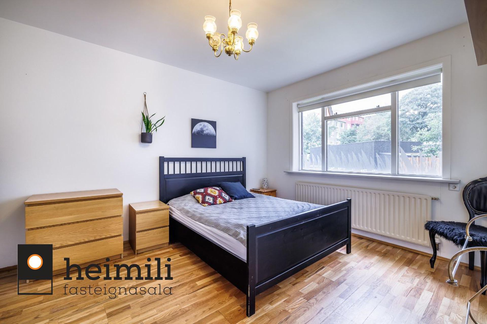 svefnherbergi eru tvöfaldur fataskápar og snýr glugginn inn í kyrrlátan bakgarðinn, sem er stór og hlýlegur.