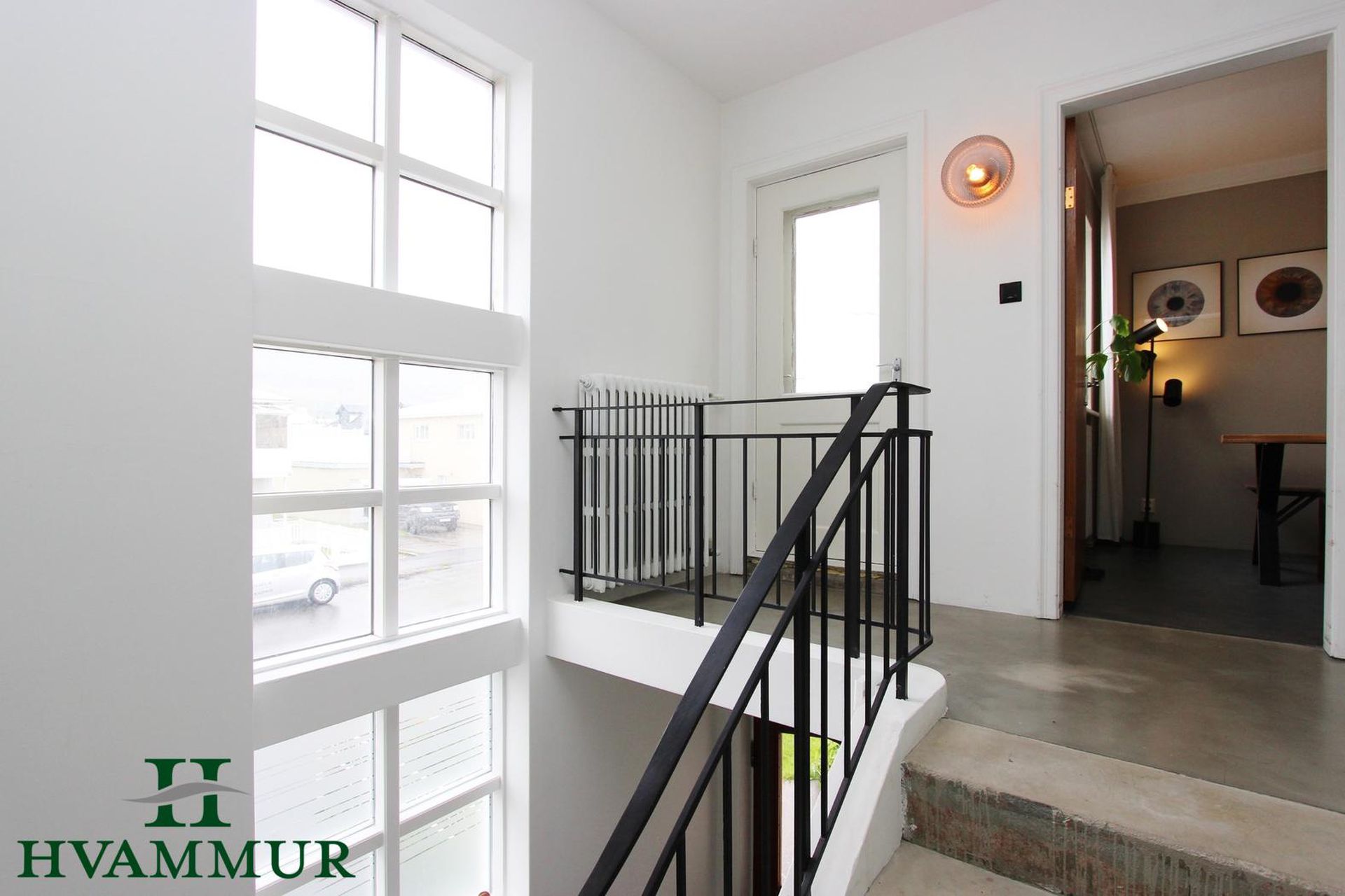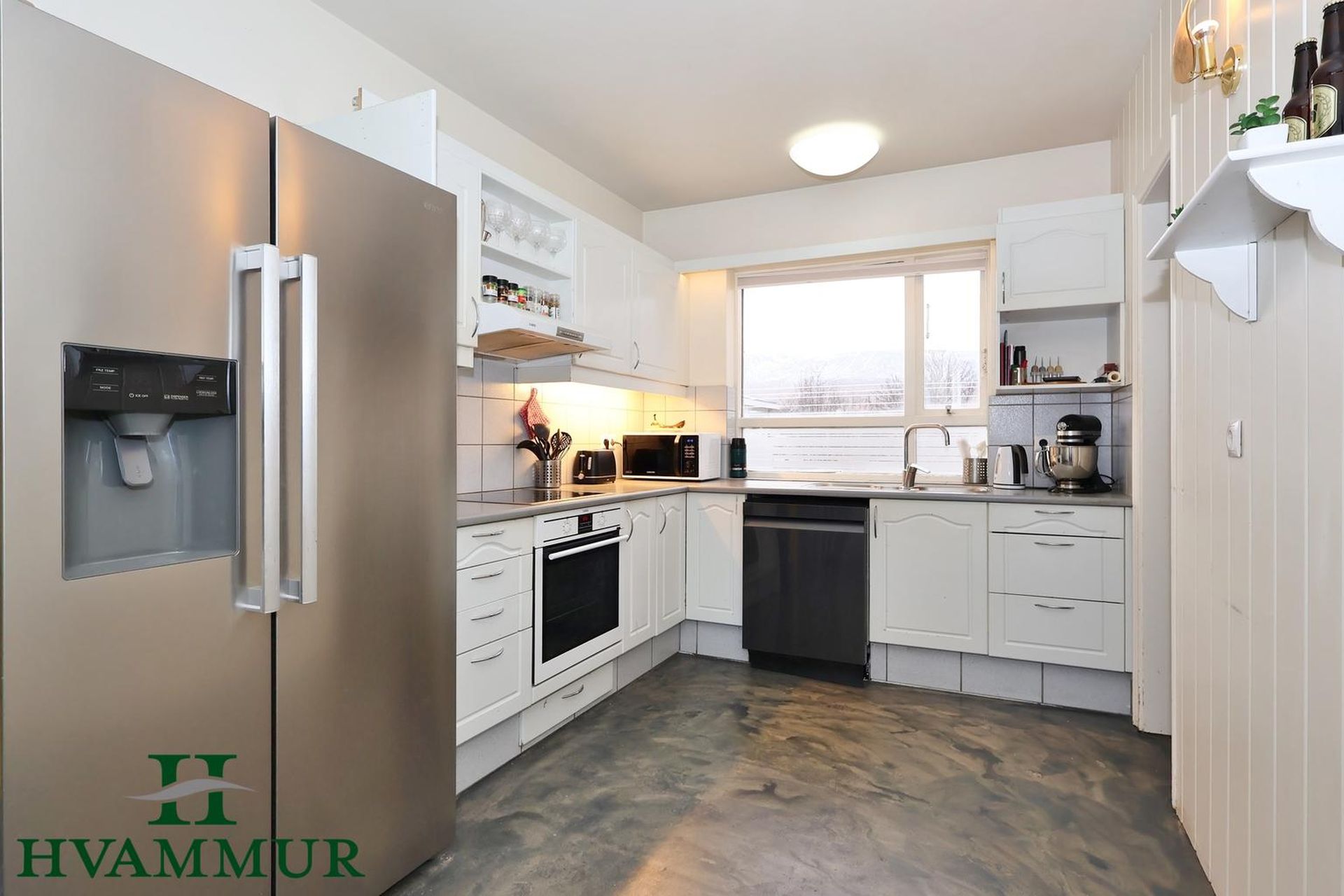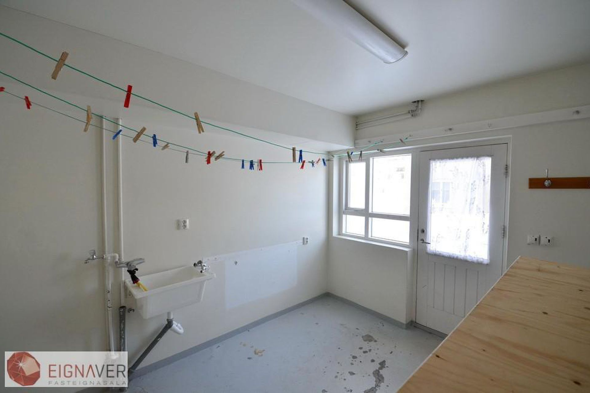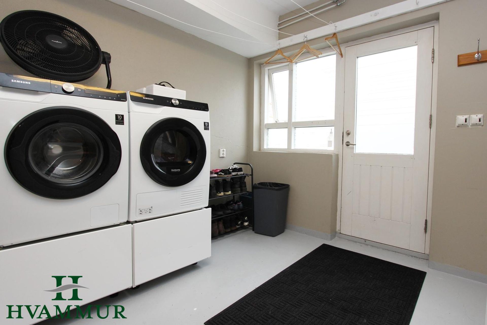 Tvær geymslur eru í kjallara og þar er hitaveitugrindin og rafmagnstaflan.