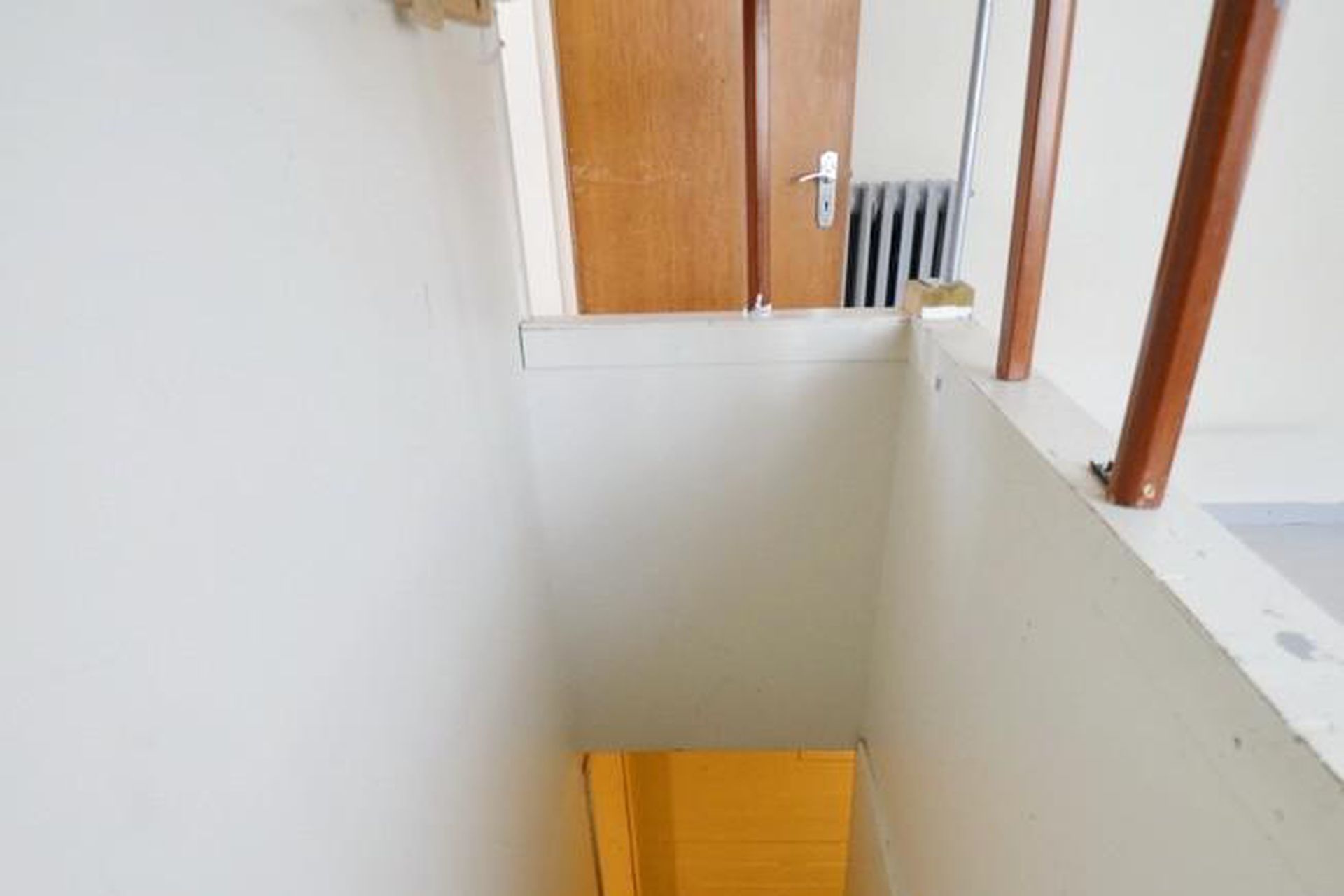 Þvottahús er á jarðhæðinni og er jafnframt annar inngangur í íbúðina. Þar er lakkað gólf og timbur stigi niður í kjallara.