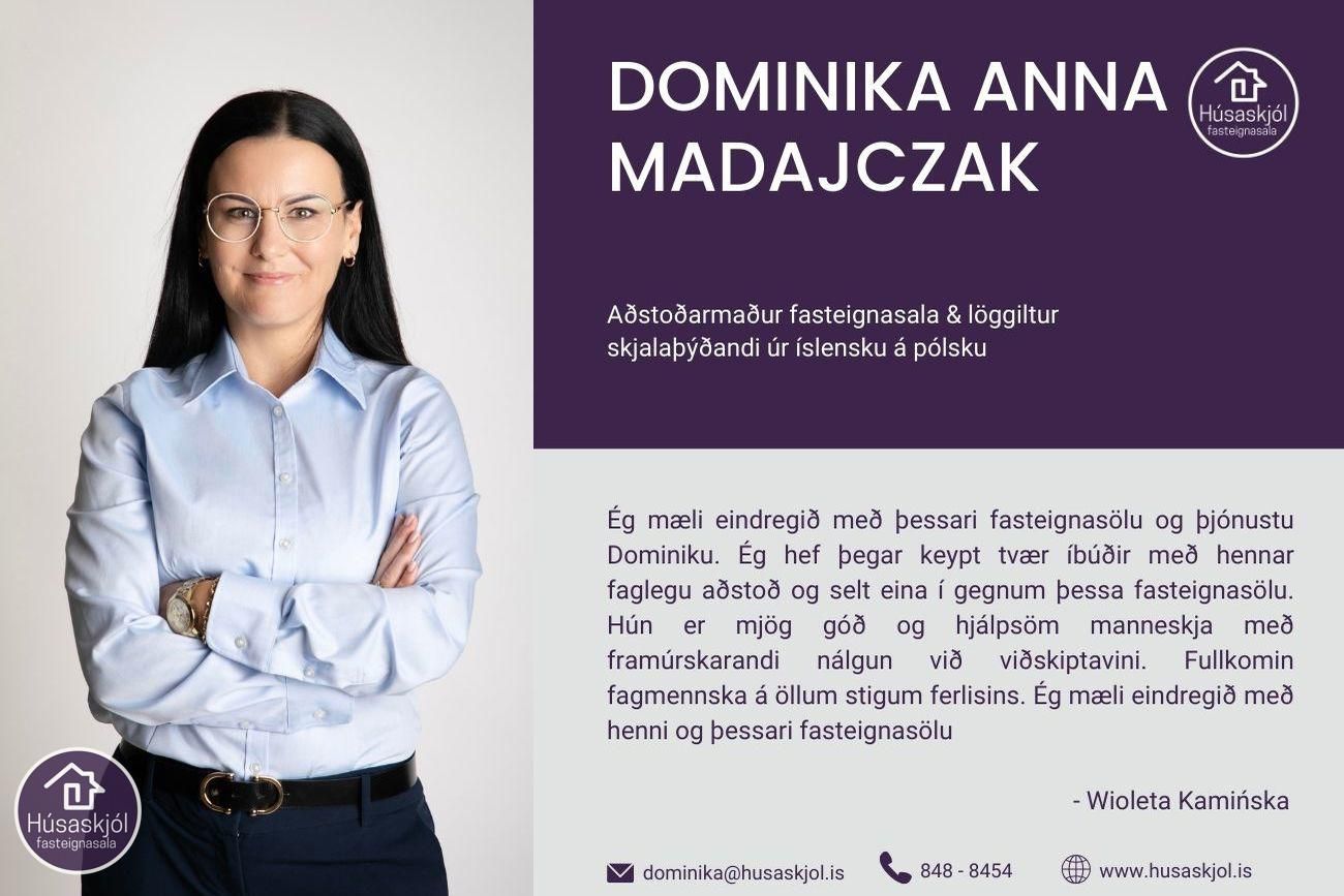 Allar nánari upplýsingar veitir Ásdís Ósk Valsdóttir löggiltur fasteignasali í email: asdis@husaskjol.is eða í síma frá 09:00-17:00 á virkum dögum: 863-0402 og aðstoðarmaður fasteignasala Dominika Anna Madajczak dominika@husaskjol.is eða i síma 848-8454.