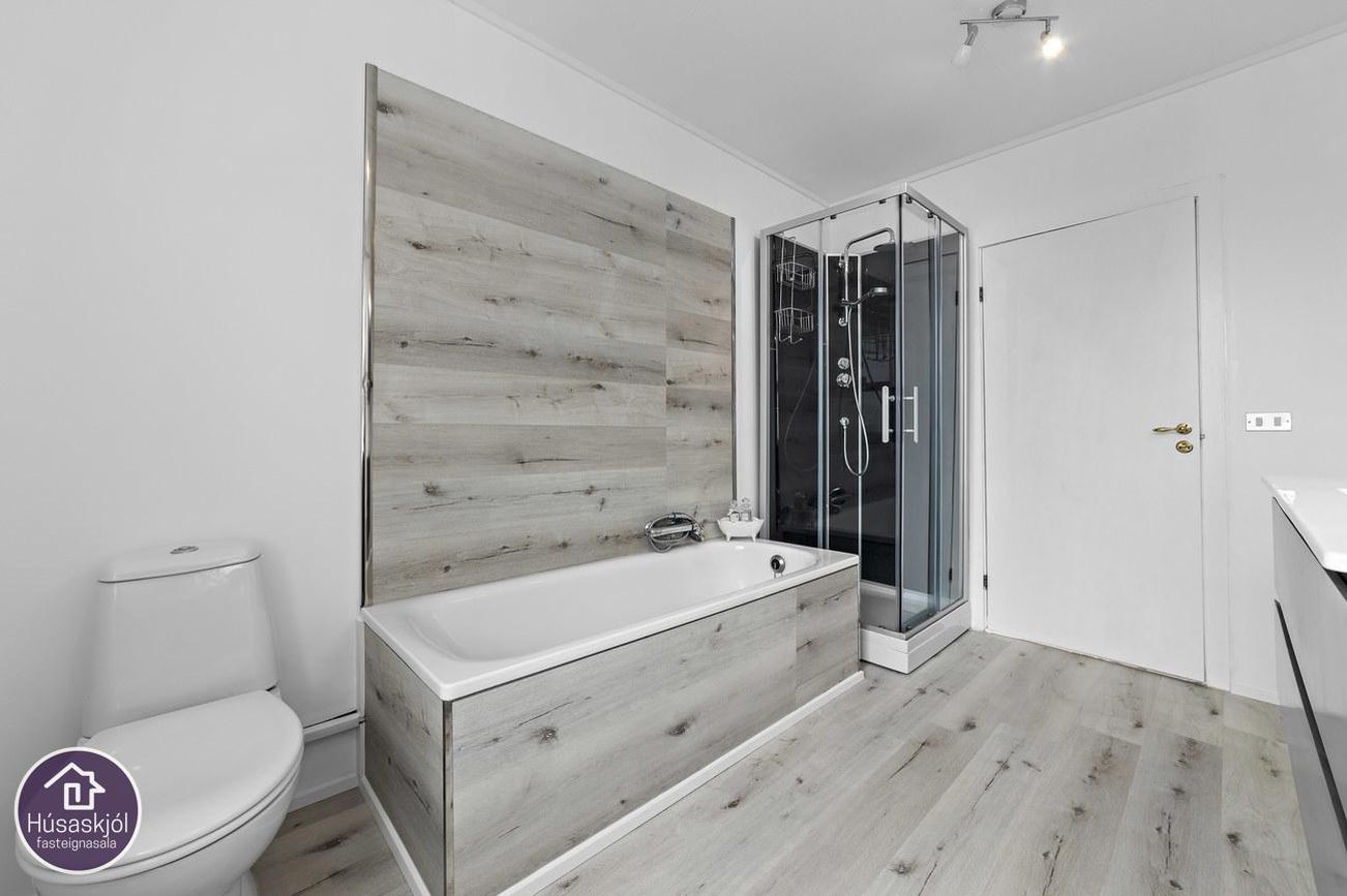 Baðherbergi: allt nema baðkarið hefur verið endurnýjað 2025. Á baðherbergi og í þvottahúsi er vinýlgólf