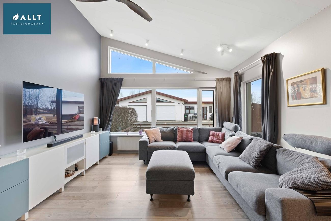 4-5 herbergja parhús með opnu rými og björtum herbergjum. Möguleiki á að búa til fjórða svefnherbergi úr eldhússvæði. Frágengin lóð með steyptu bílaplani og verönd.