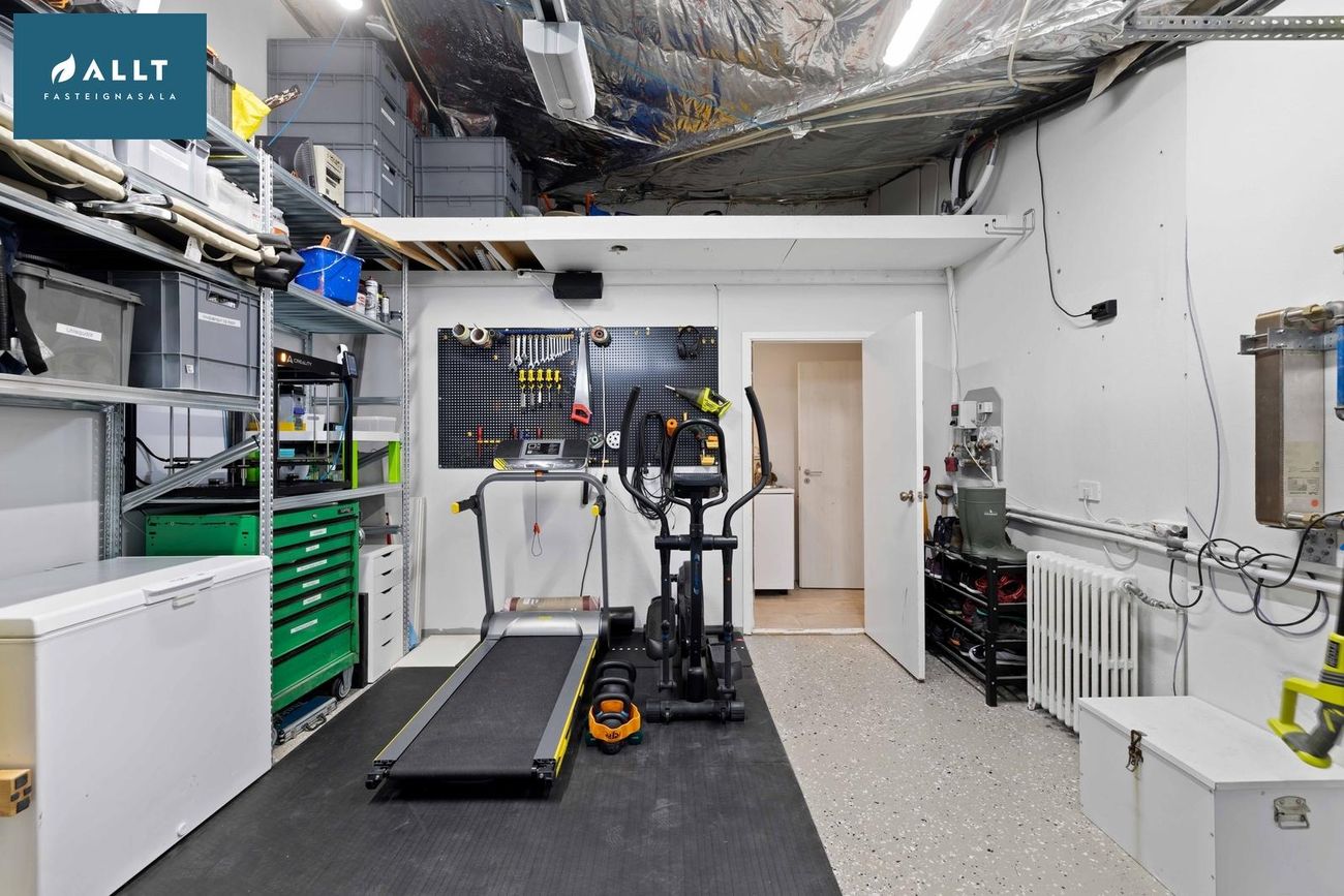 Fataskápur í forstofu og geymsluloft í bílskúr.