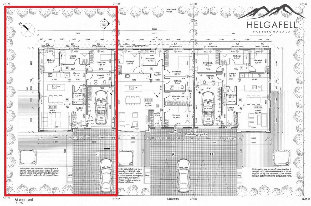 Hitalögn: Ísteyptar hitalagnir verða í öllum gólfum og verður tengigrind fyrir gólfhita frágengin. Stýringar og annar búnaður gólfhita fylgir ekki.