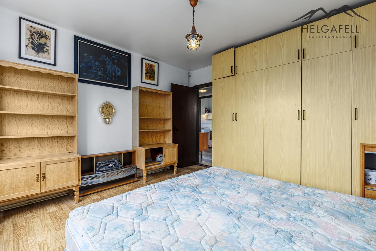 Svefnherbergi 3: Inn af eldhúsi er gott svefnherbergi, fataskápur, parket á gólfi.