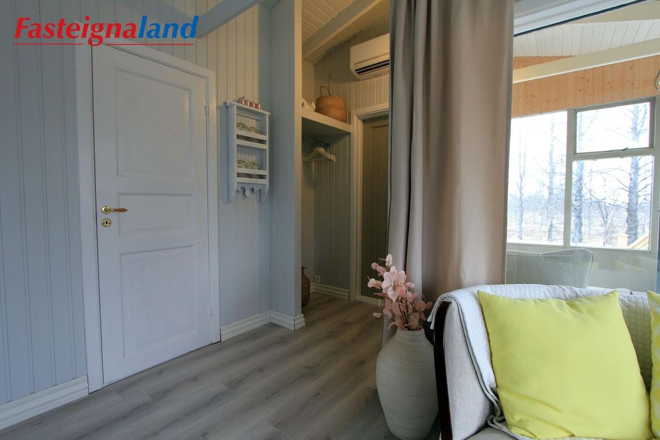 Að innan er húsið klætt með máluðum panil, harðparket er á öllum gólfum.