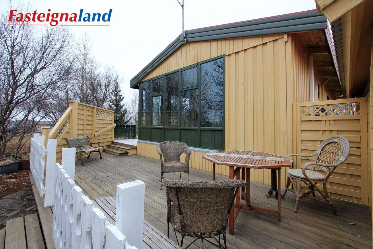 Allur frágangur við húsið er til fyrirmyndar, á lóðinni er fallegur trjágróður og er hún afgirt og mjög skjólsæl.