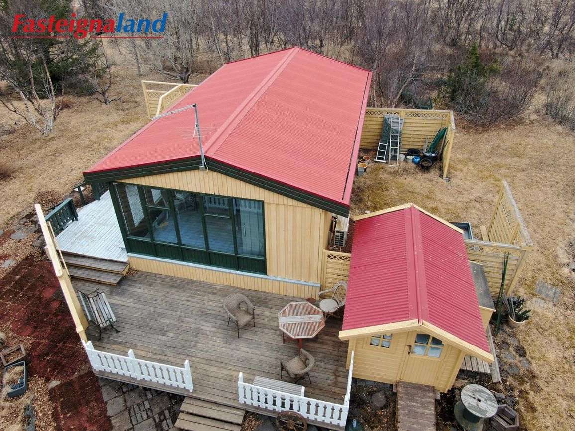 Húsið er byggt úr timbri árið 1993 og er klætt að utan með standandi timburklæðningu.