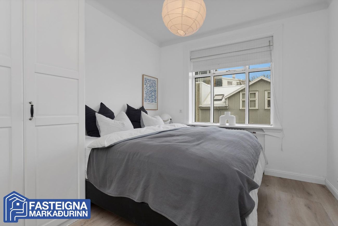 Fasteignamarkaðurinn ehf. s: 570-4500 kynnir til sölu virkilega fallega, bjarta, vel skipulagða og mikið endurnýjaða 82,3 fermetra 3ja herbergja íbúð á 2. hæð með fallegu útsýni í virkilega fallegu og virðulegu steinsteyptu fjölbýlishúsi við Óðinsgötu í Reykjavík. Aukin lofthæð er í íbúðinni, eða um 2,7 metrar.