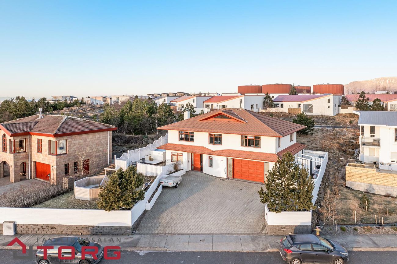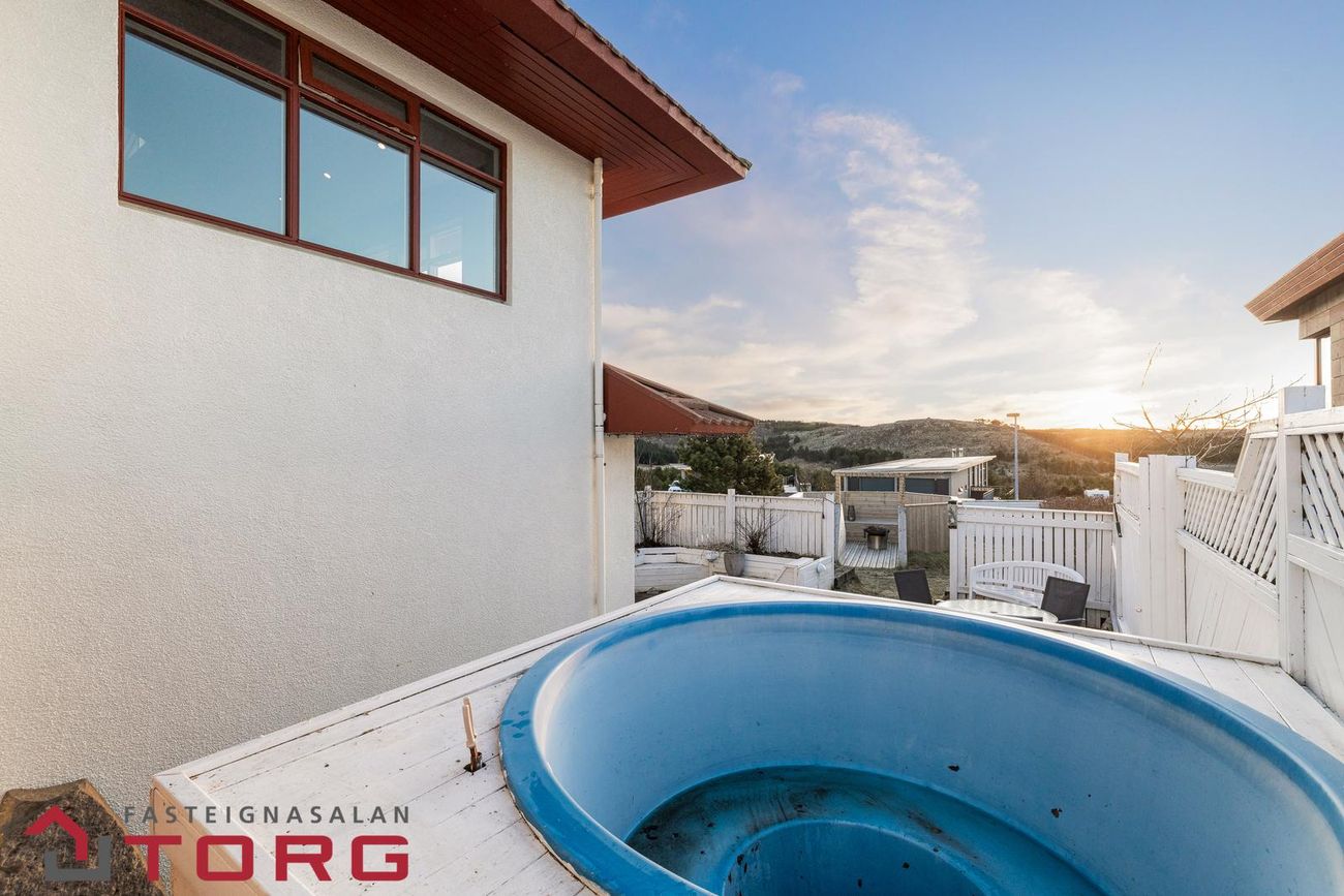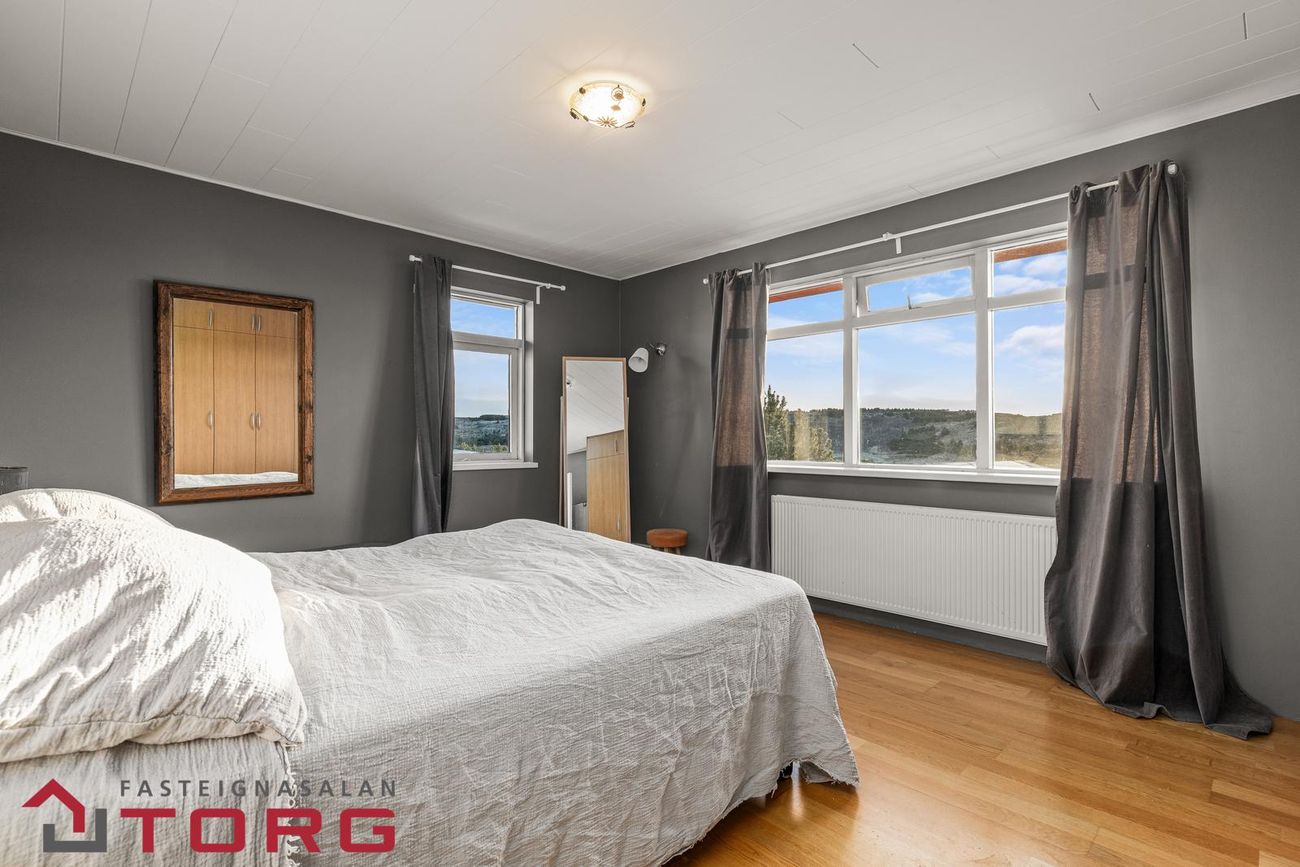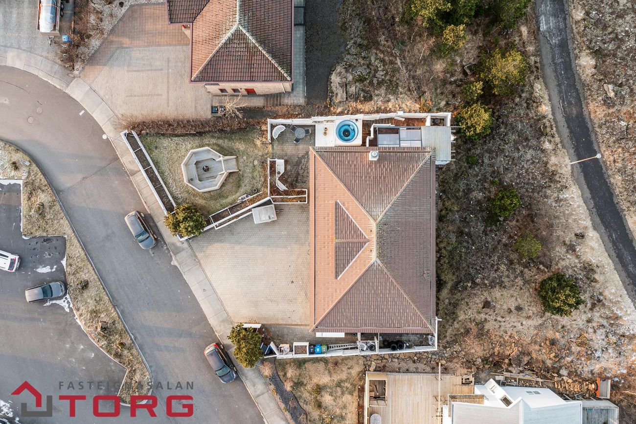 Innbyggður tvöfaldur bílskúr með hitalögn. Innangengt frá forstofu.