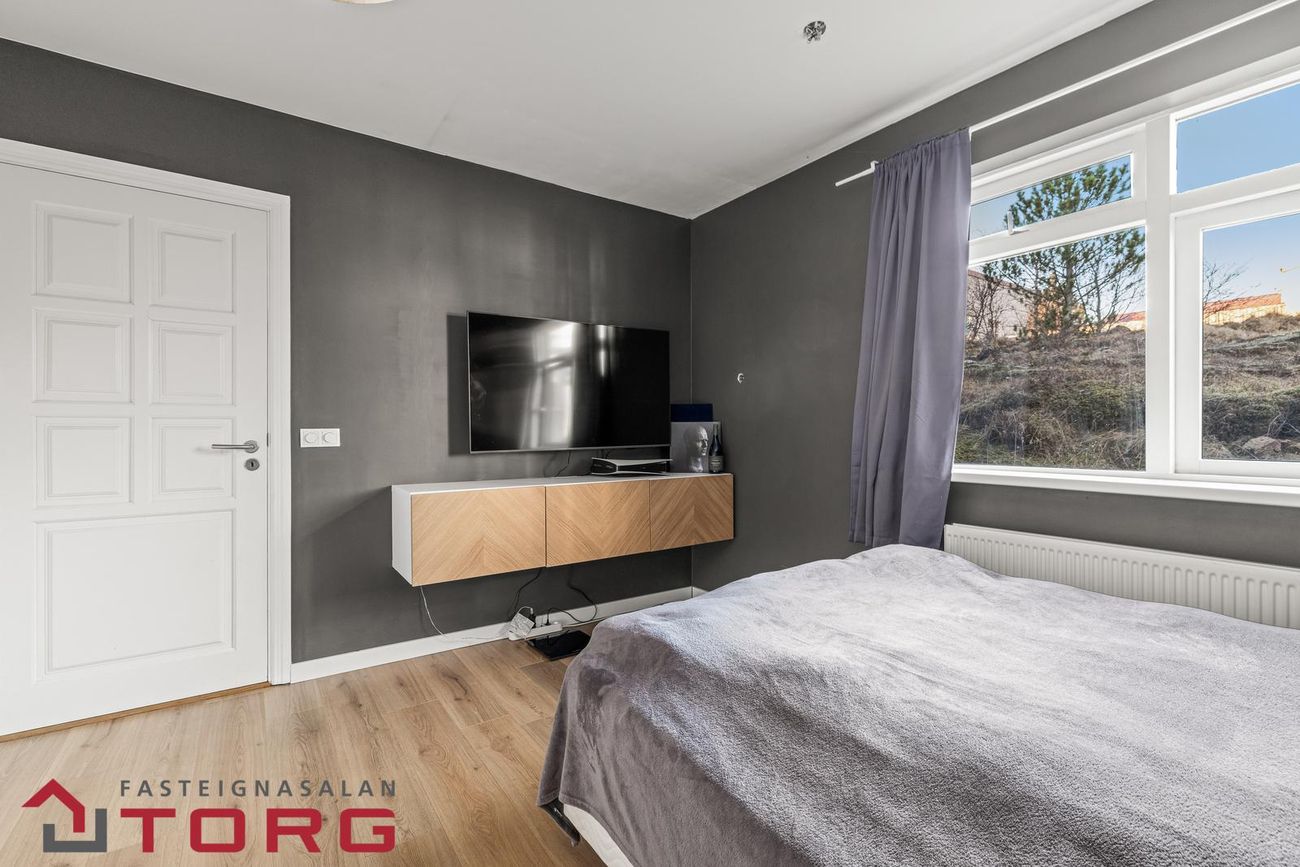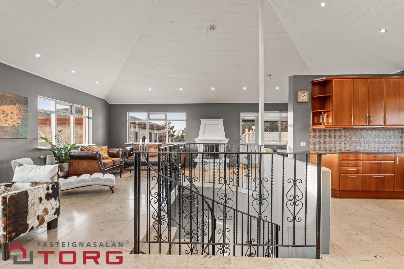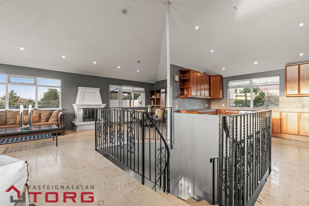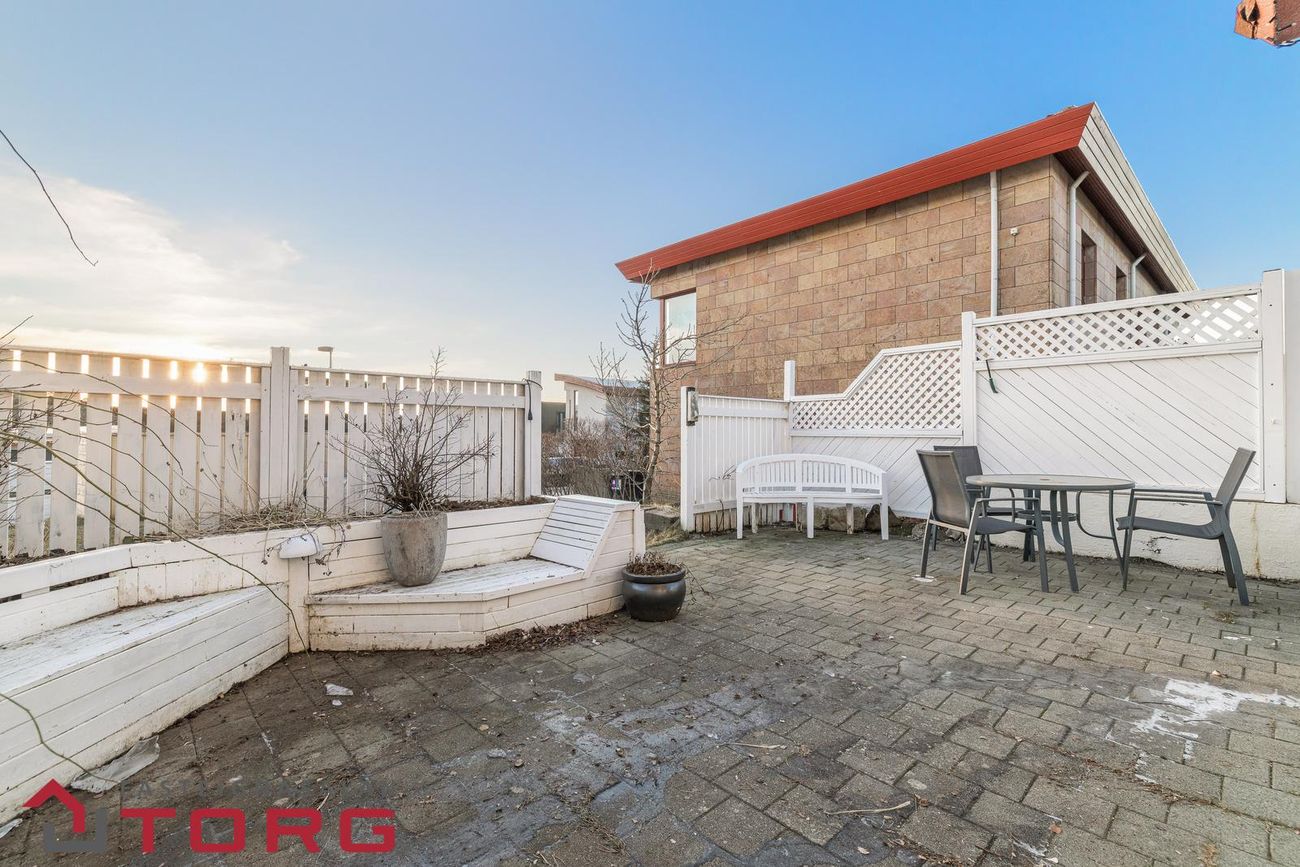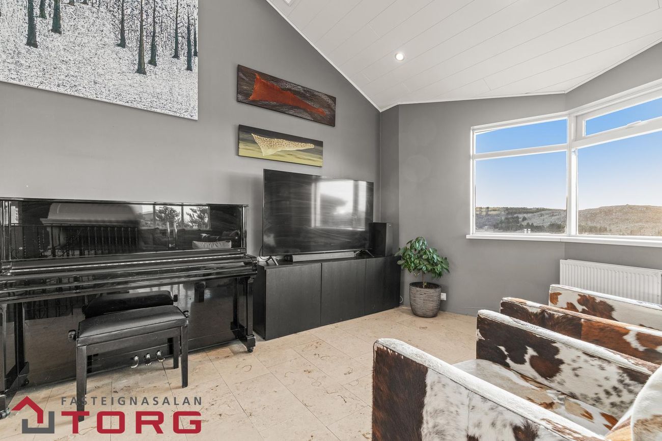 Innbyggður tvöfaldur bílskúr með hitalögn. Innangengt frá forstofu.