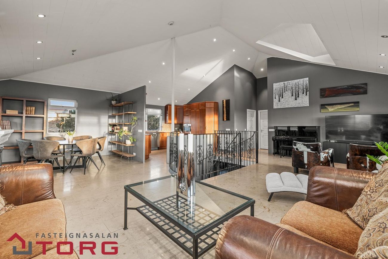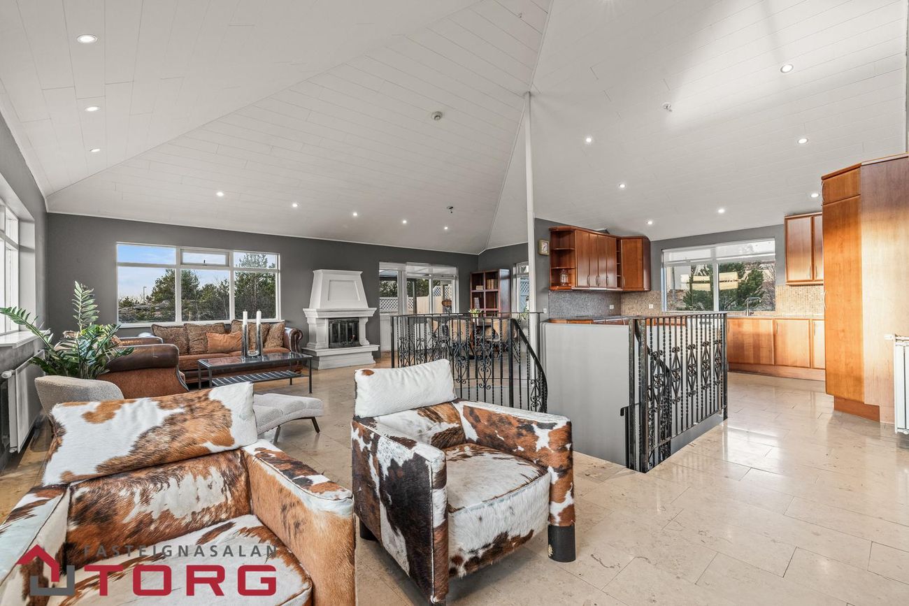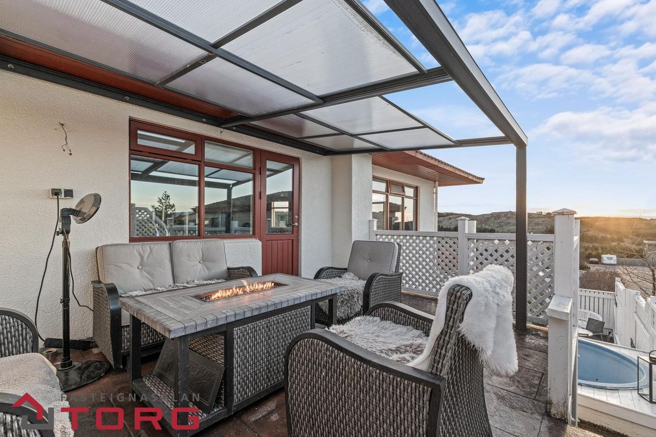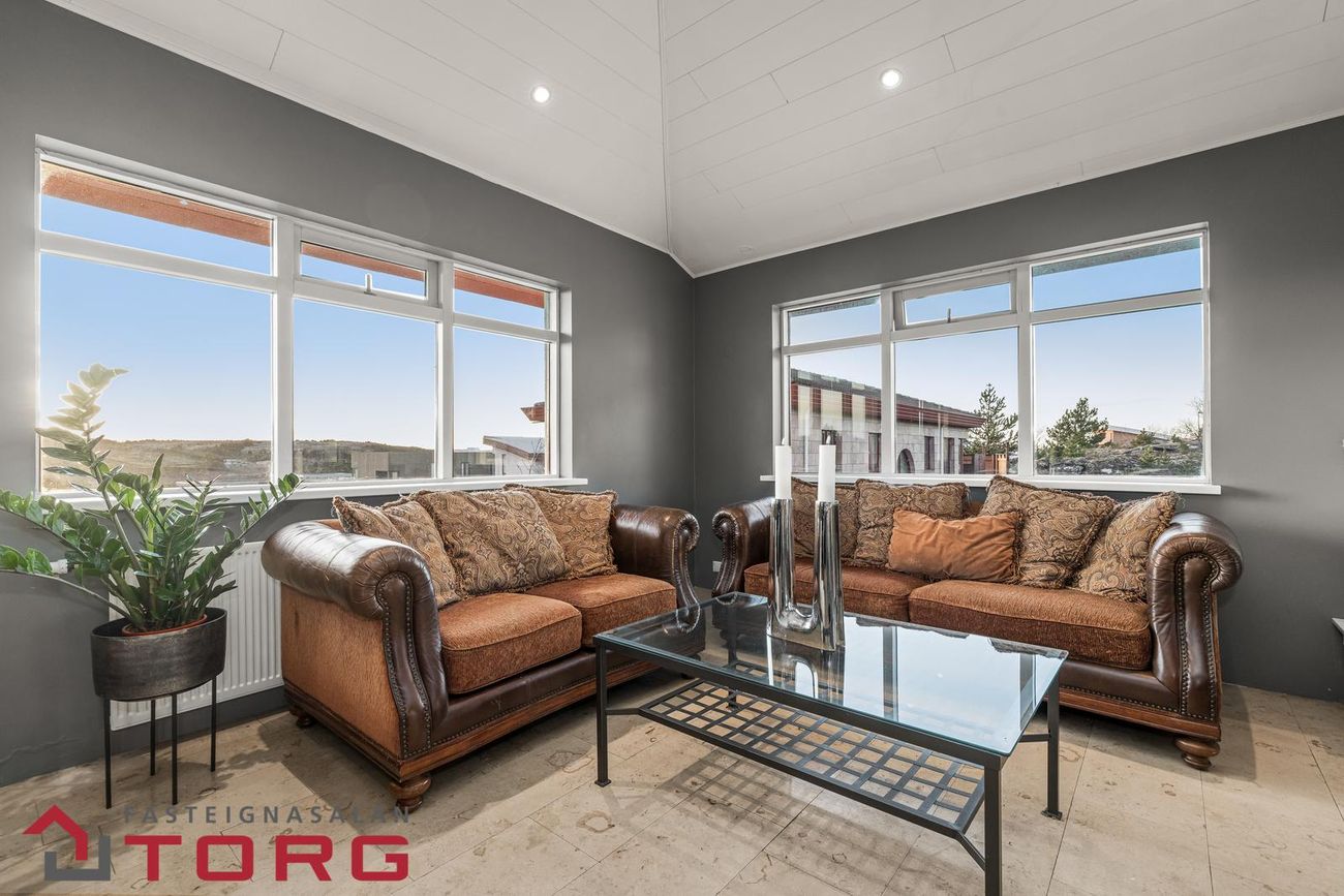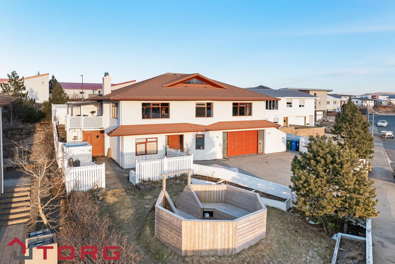 Innbyggður tvöfaldur bílskúr með hitalögn. Innangengt frá forstofu.