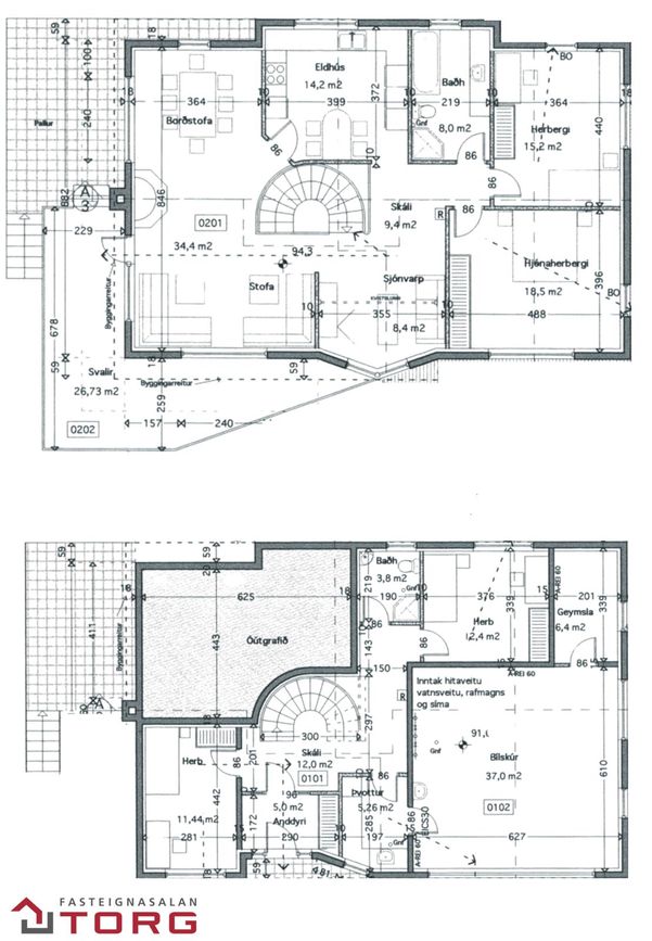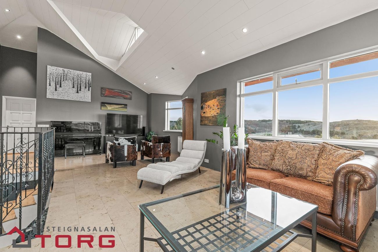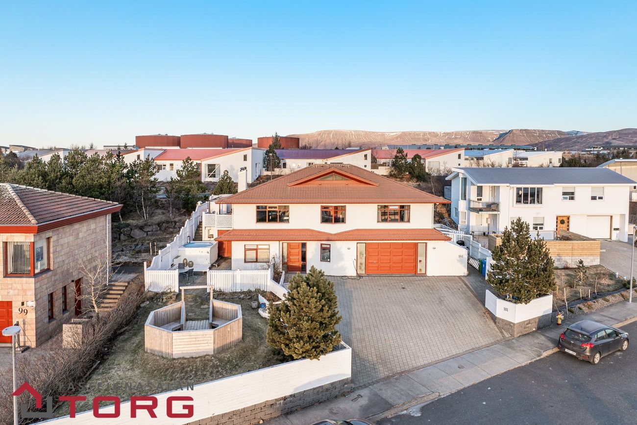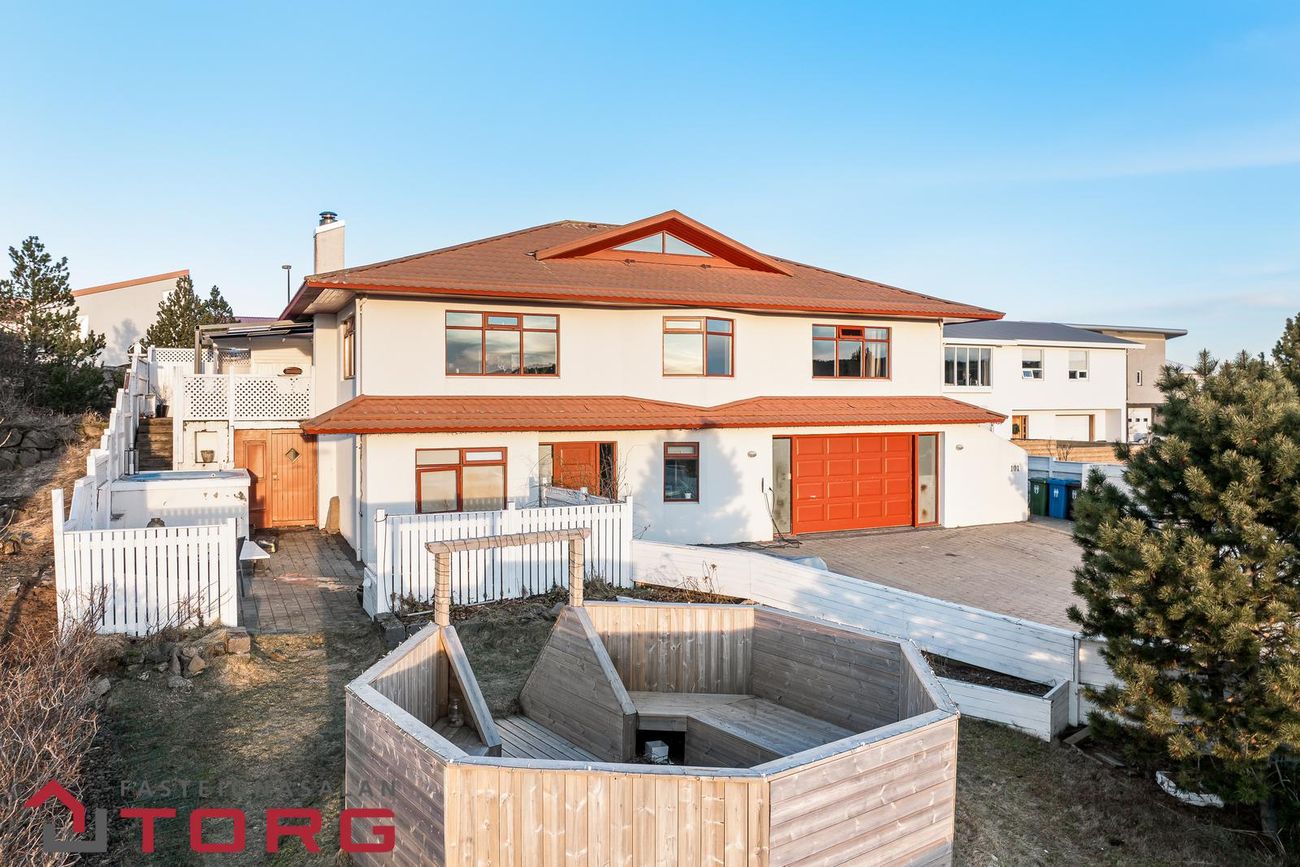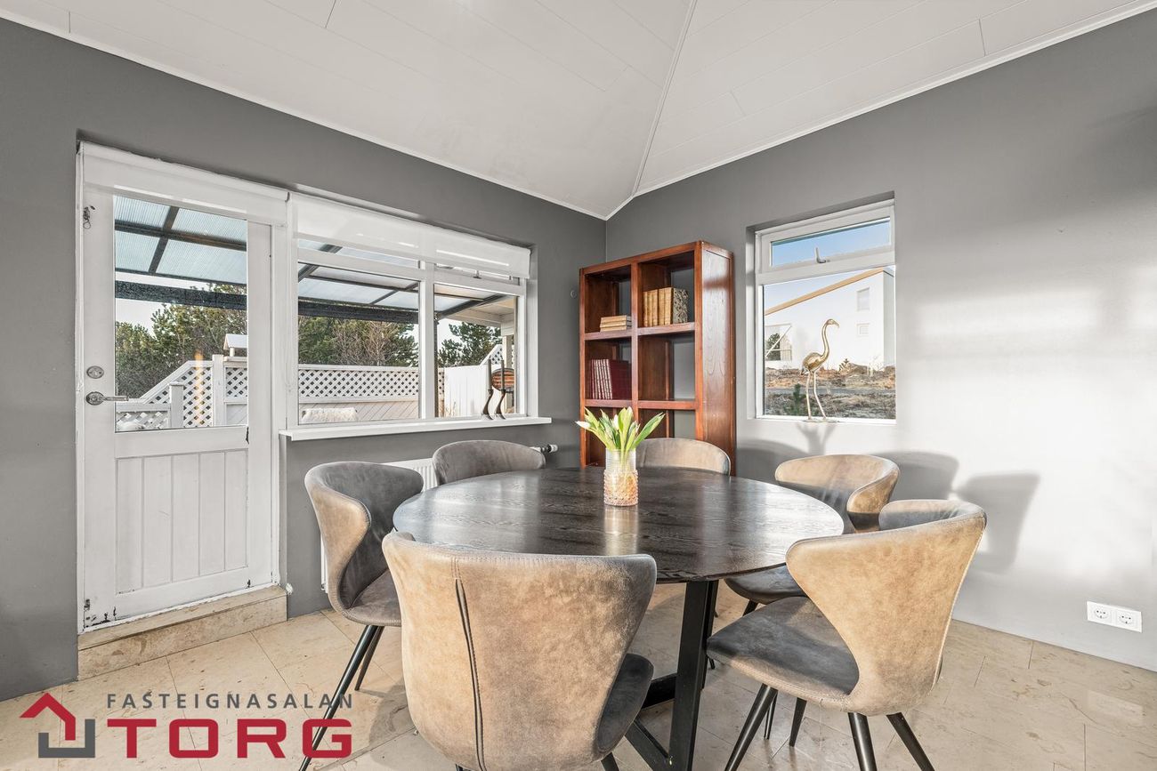 Innbyggður tvöfaldur bílskúr með hitalögn. Innangengt frá forstofu.