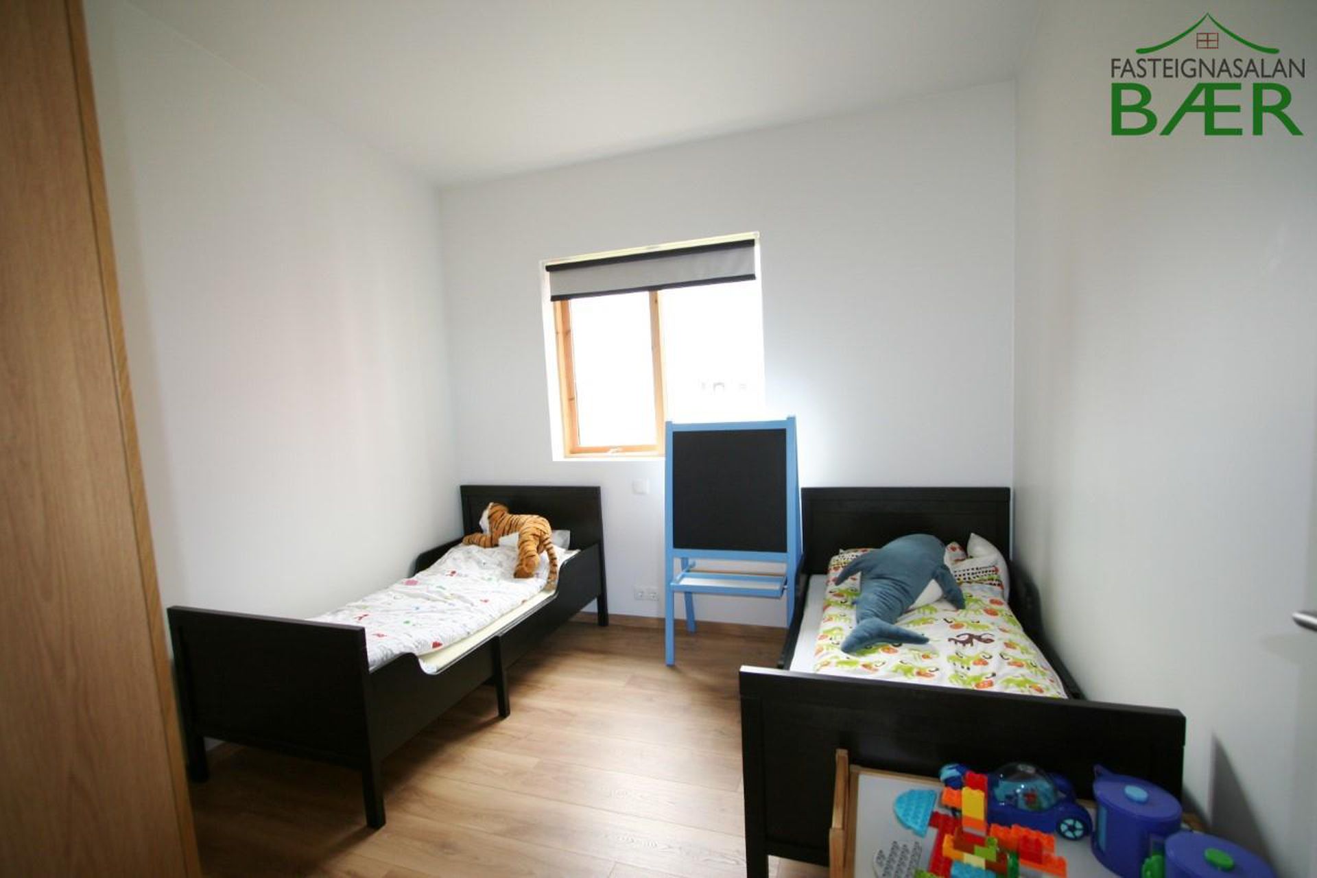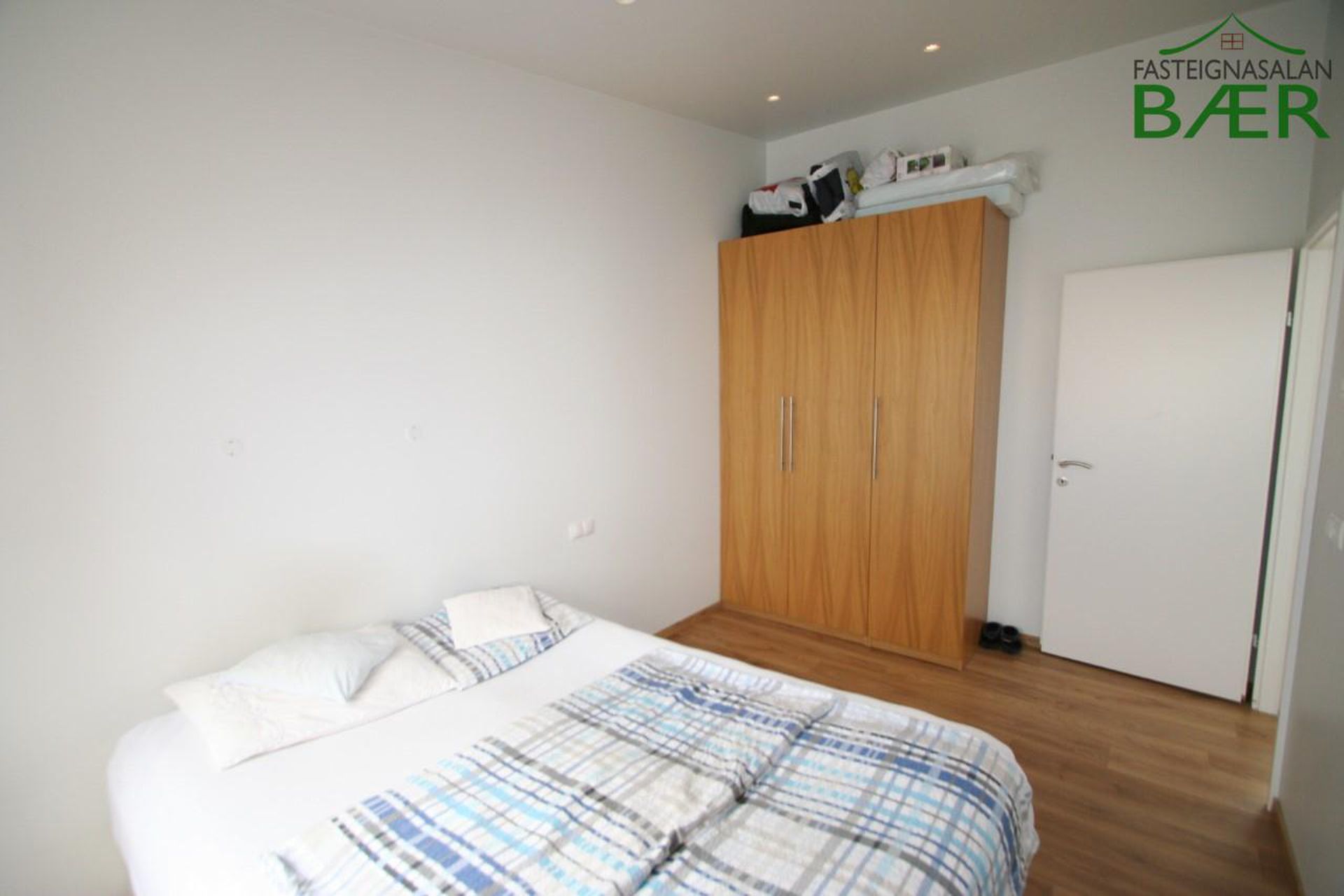 Herbergi II: parket á gólfi og fataskápar.